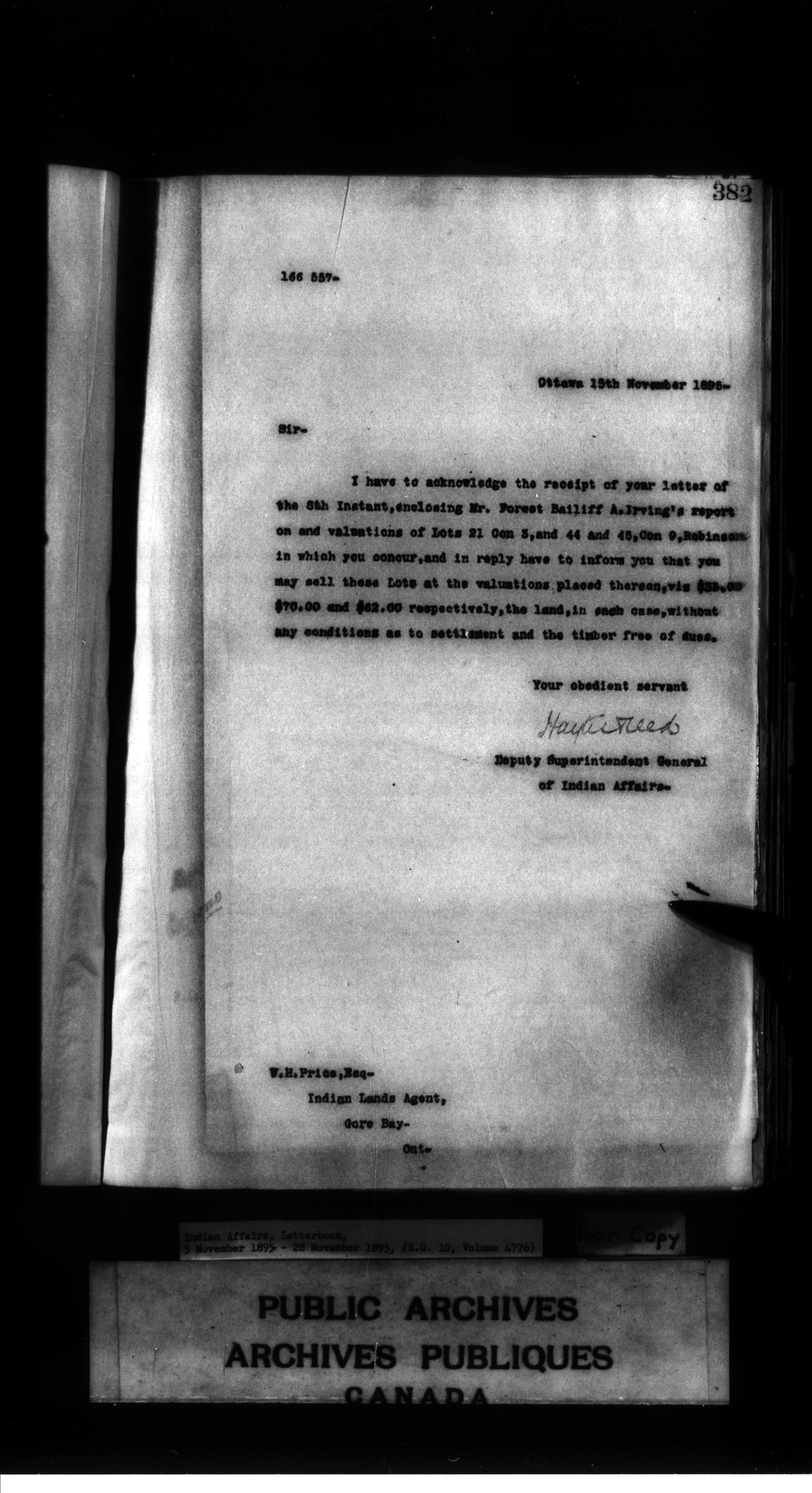 Indian Affairs, Letterbook, 5 November 1895 - 28 November 1895