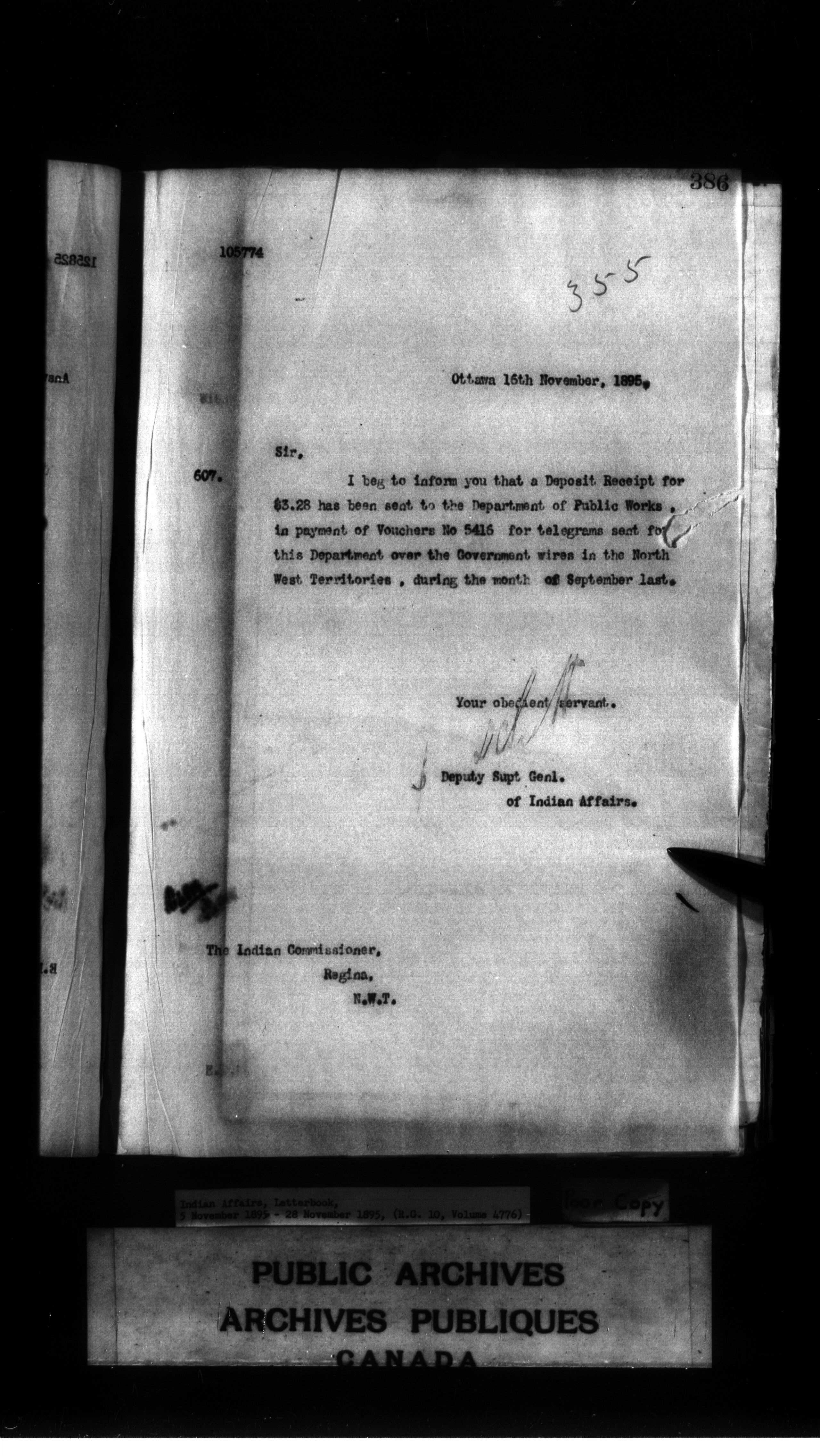 Indian Affairs, Letterbook, 5 November 1895 - 28 November 1895