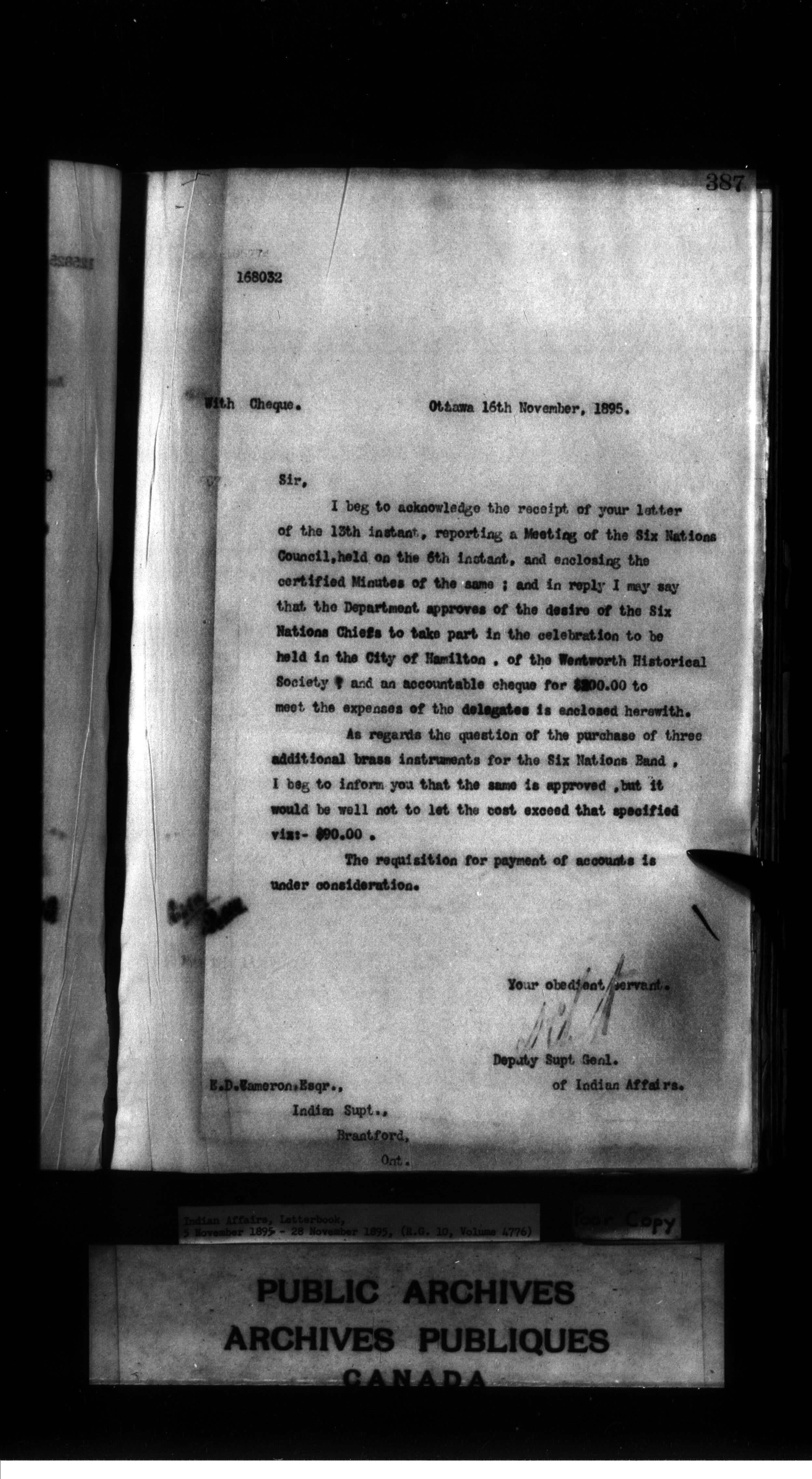 Indian Affairs, Letterbook, 5 November 1895 - 28 November 1895