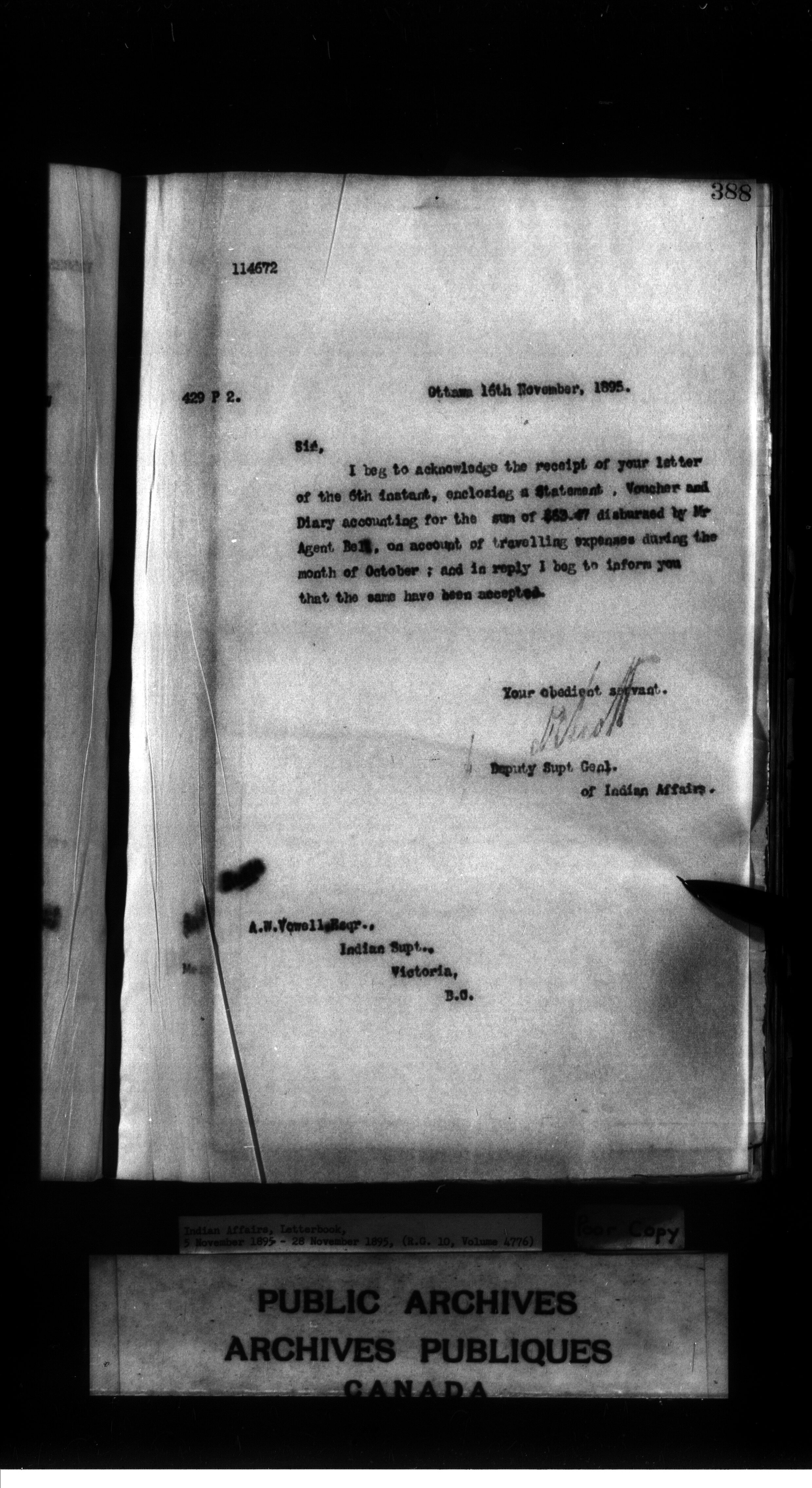 Indian Affairs, Letterbook, 5 November 1895 - 28 November 1895