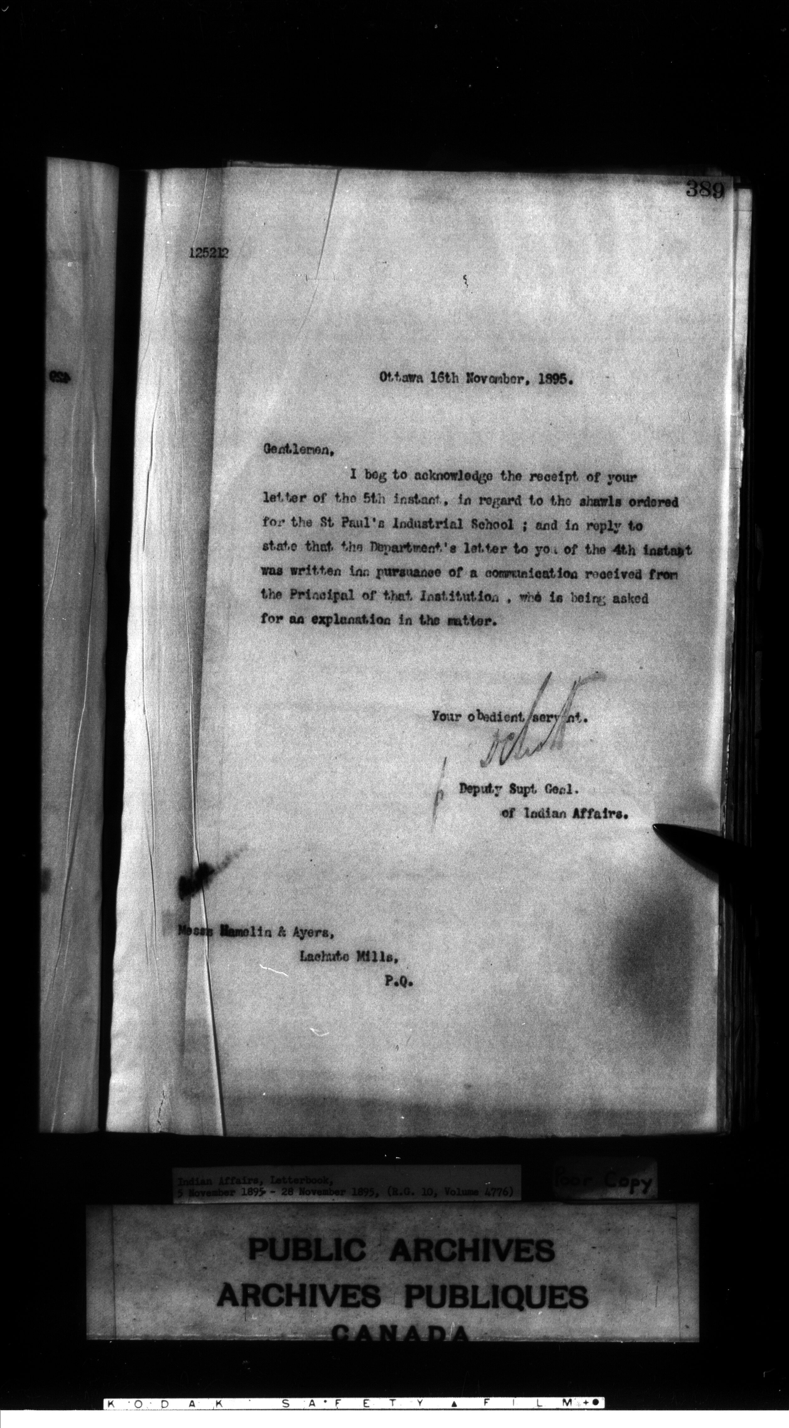 Indian Affairs, Letterbook, 5 November 1895 - 28 November 1895
