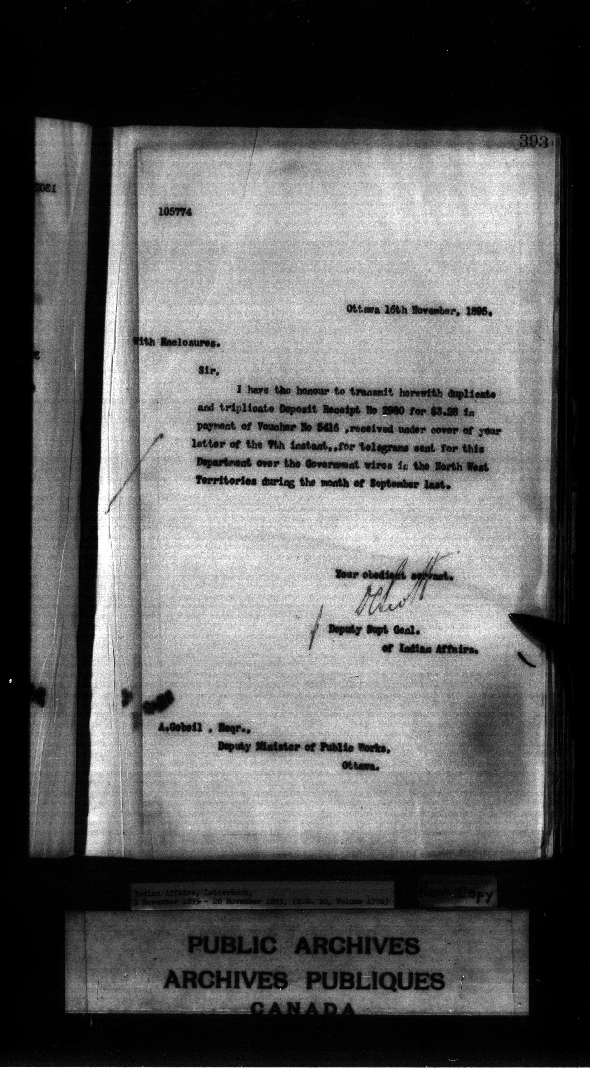 Indian Affairs, Letterbook, 5 November 1895 - 28 November 1895