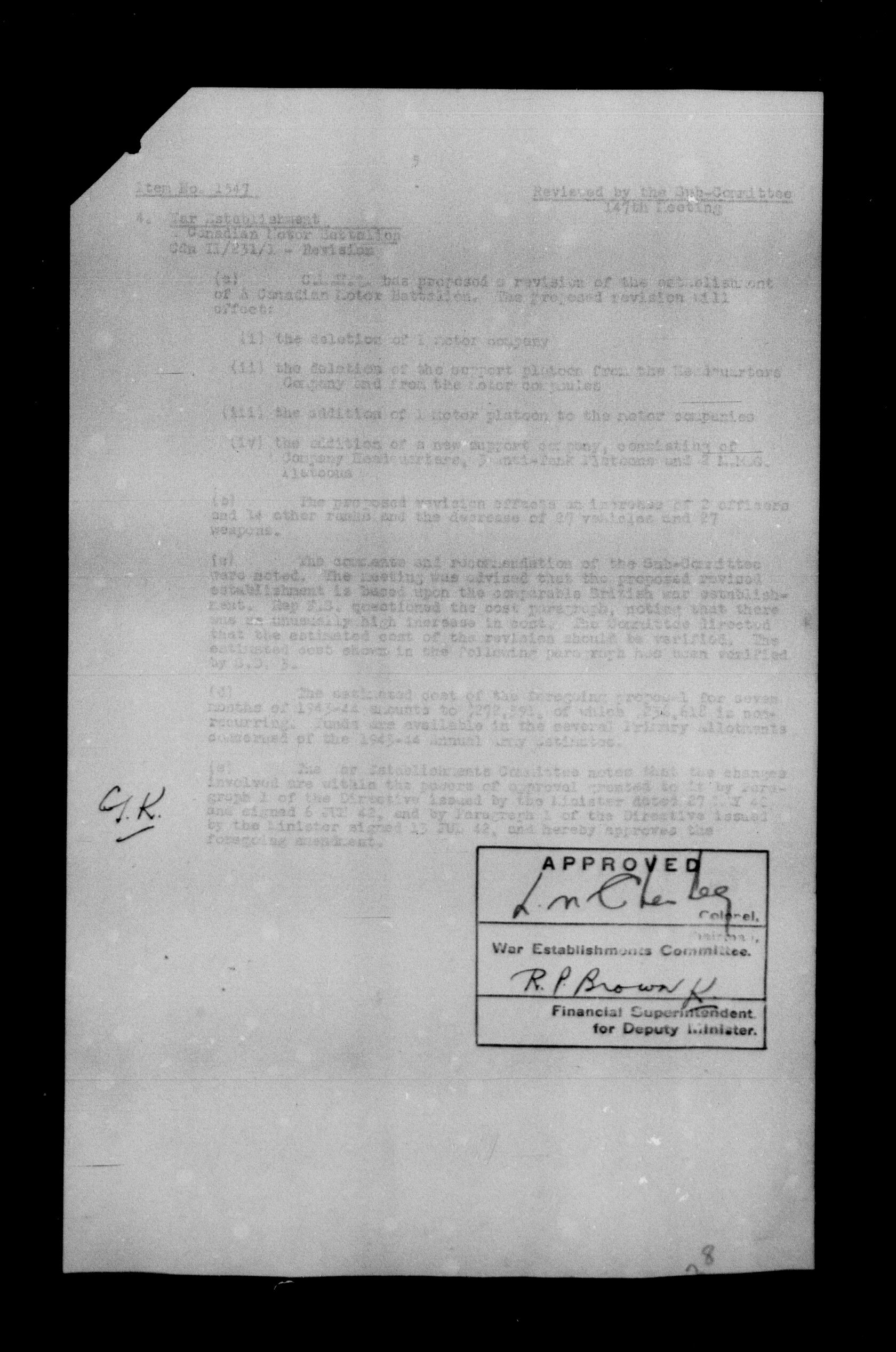 Secret and Confidential Subject Files, Army - Establishment - Headquarters of a Canadian armoured brigade.