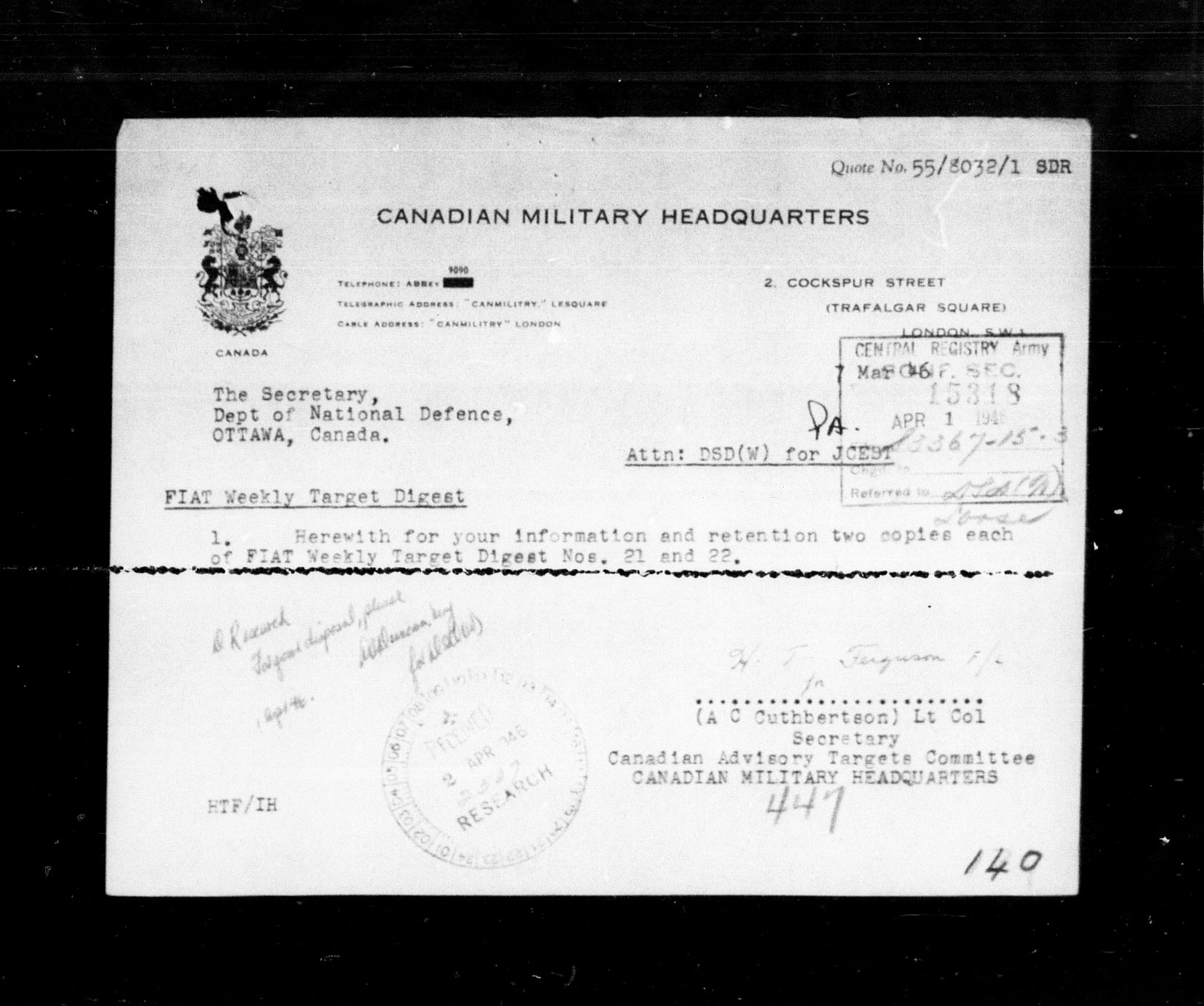 1903 Headquarters Central Registry, subject files, first series, 1866-1950 - 8285