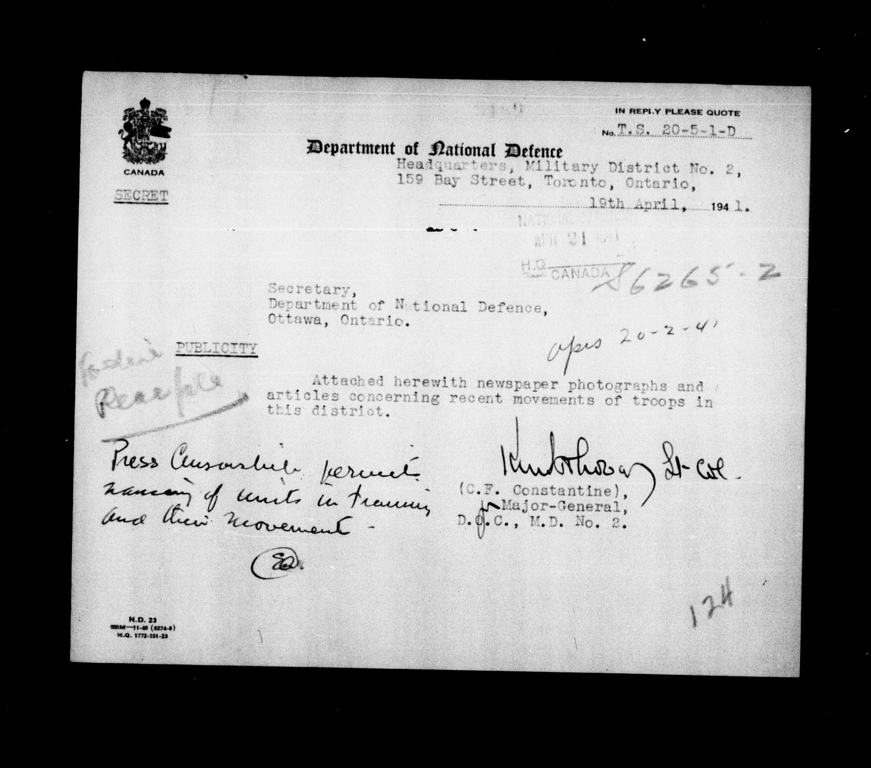 Department of National Defence : 1903 Headquarters Central Registry, subject files, 1866-1950 : C-8306