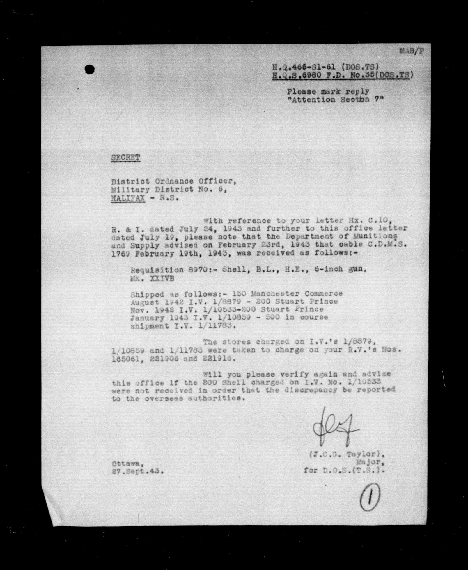 Department of National Defence : 1903 Headquarters Central Registry, subject files, 1866-1950 : C-8330