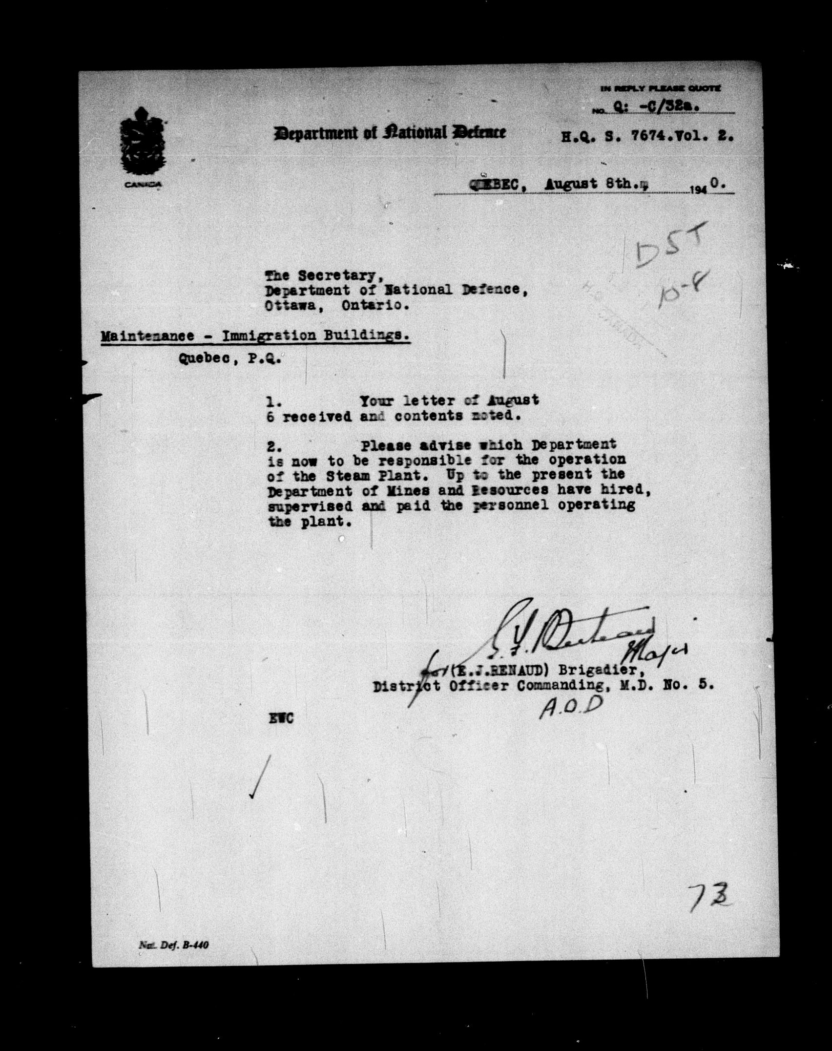 Department of National Defence : 1903 Headquarters Central Registry, subject files, 1866-1950 : C-8336