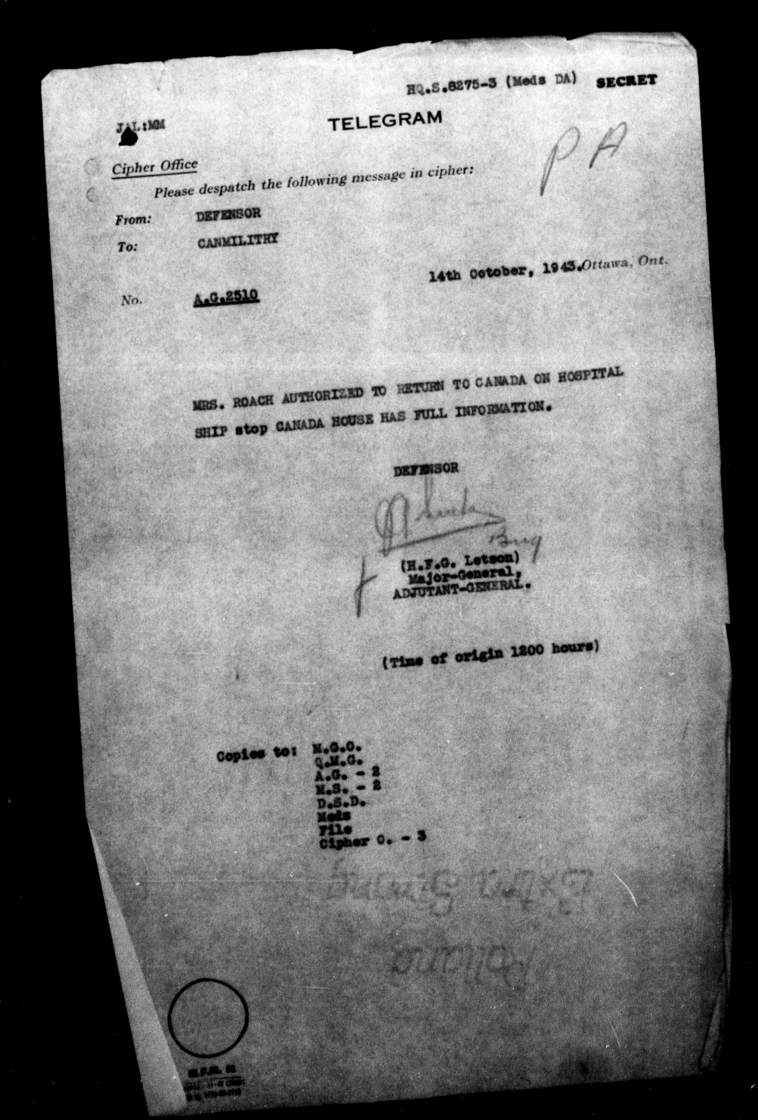 1903 Headquarters Central Registry, subject files, first series, 1866-1950 - 8362