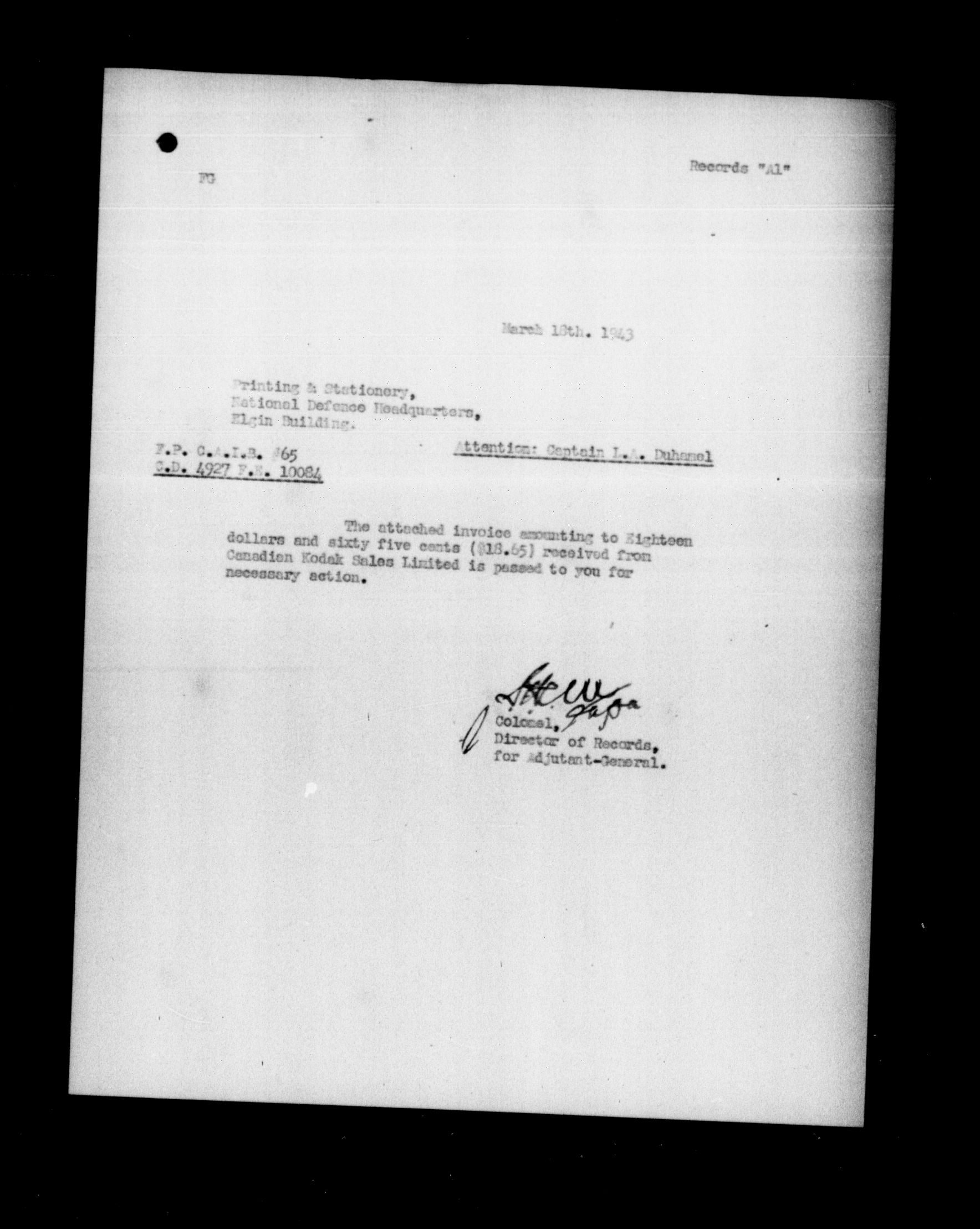 Department of National Defence : 1903 Headquarters Central Registry, subject files, 1866-1950 : C-8374