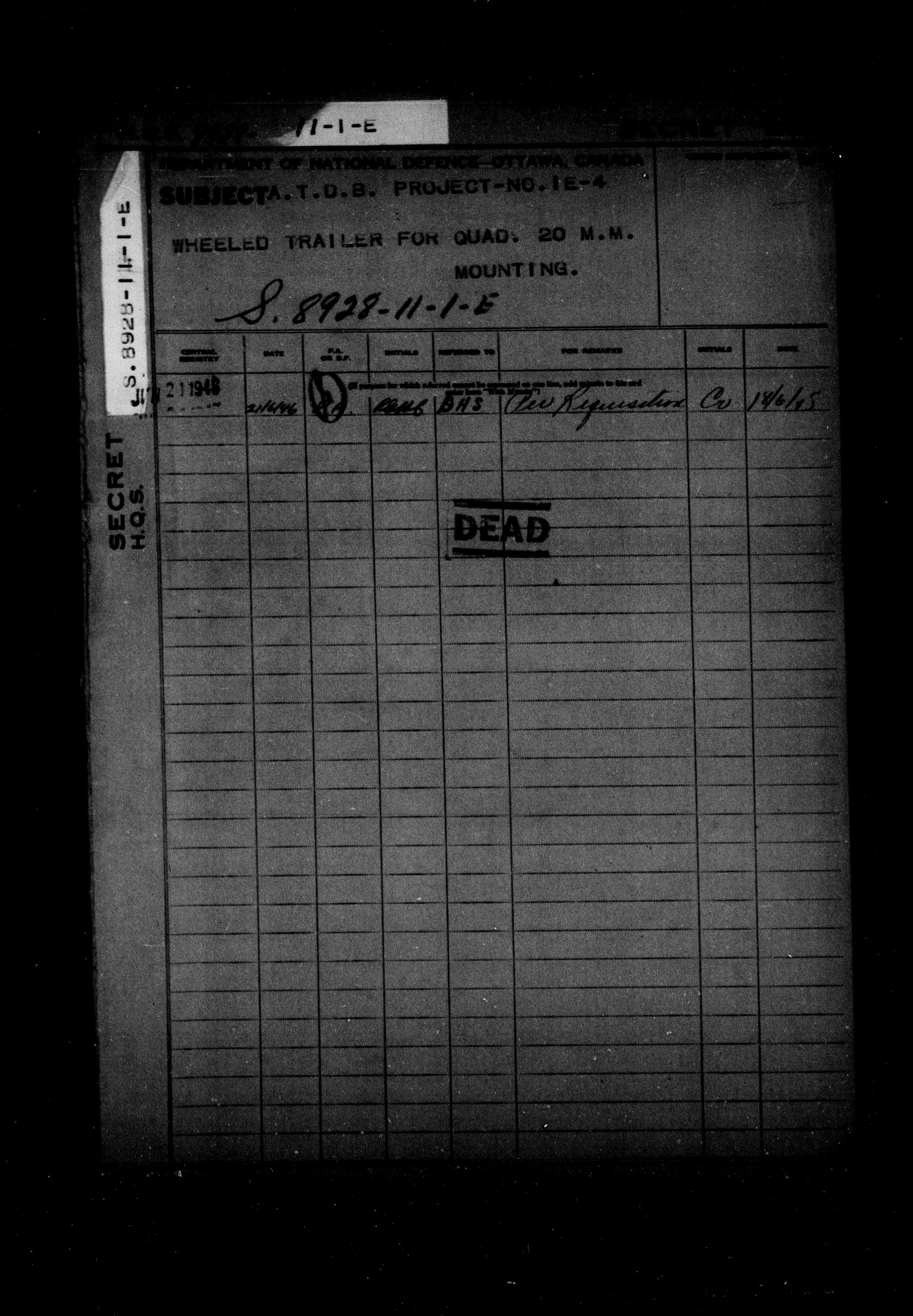 1903 Headquarters Central Registry, subject files, first series, 1866-1950 - 8385