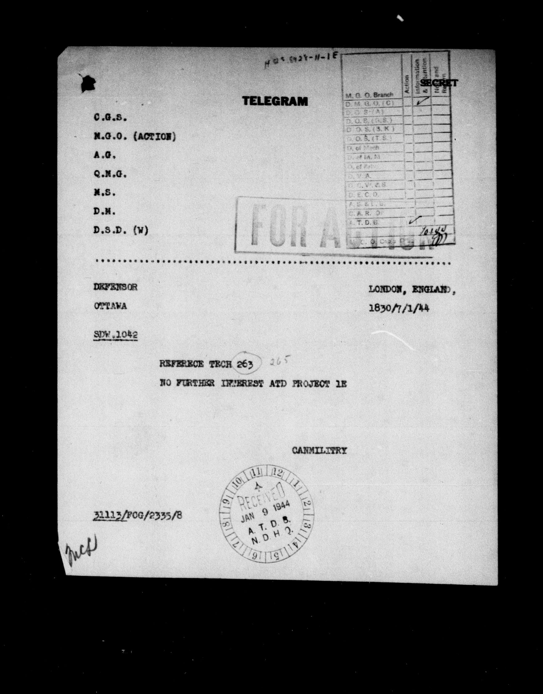 1903 Headquarters Central Registry, subject files, first series, 1866-1950 - 8385