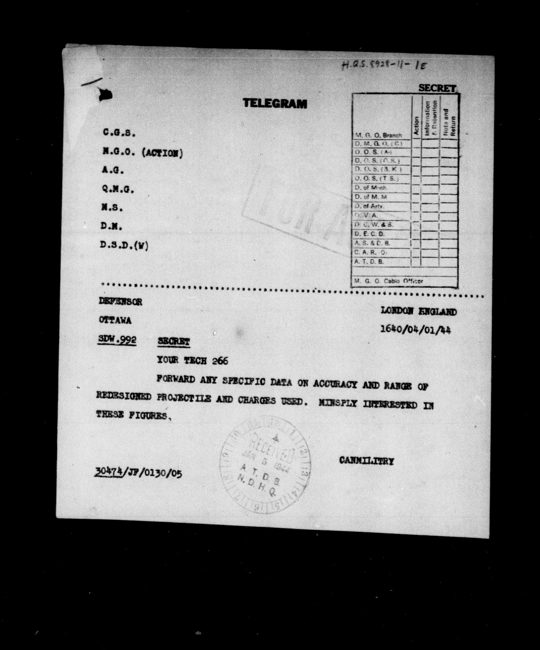 Department of National Defence : 1903 Headquarters Central Registry, subject files, 1866-1950 : C-8385