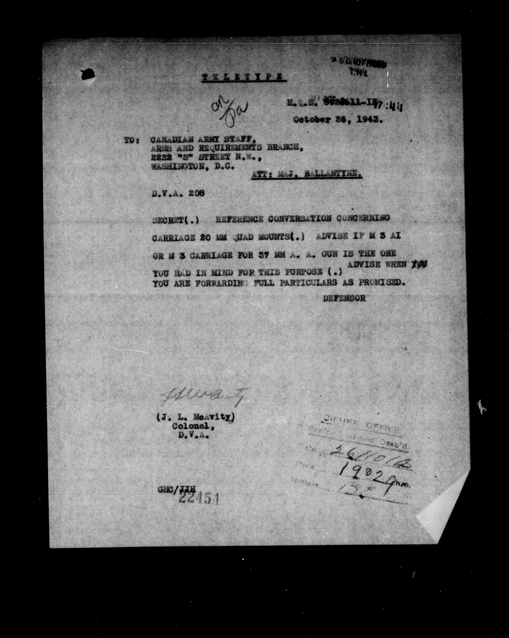 Department of National Defence : 1903 Headquarters Central Registry, subject files, 1866-1950 : C-8385