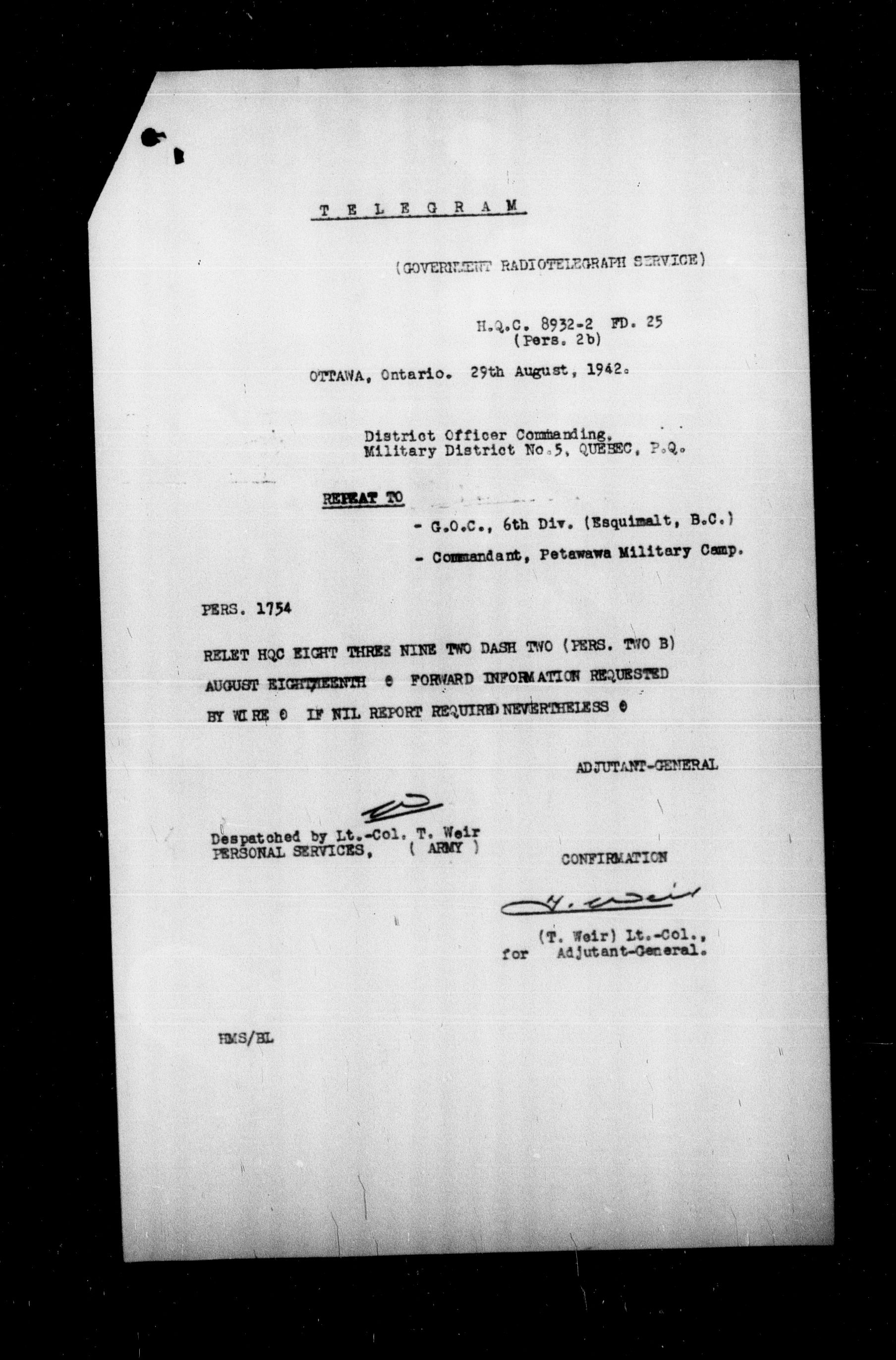 1903 Headquarters Central Registry, subject files, first series, 1866-1950 - 8390