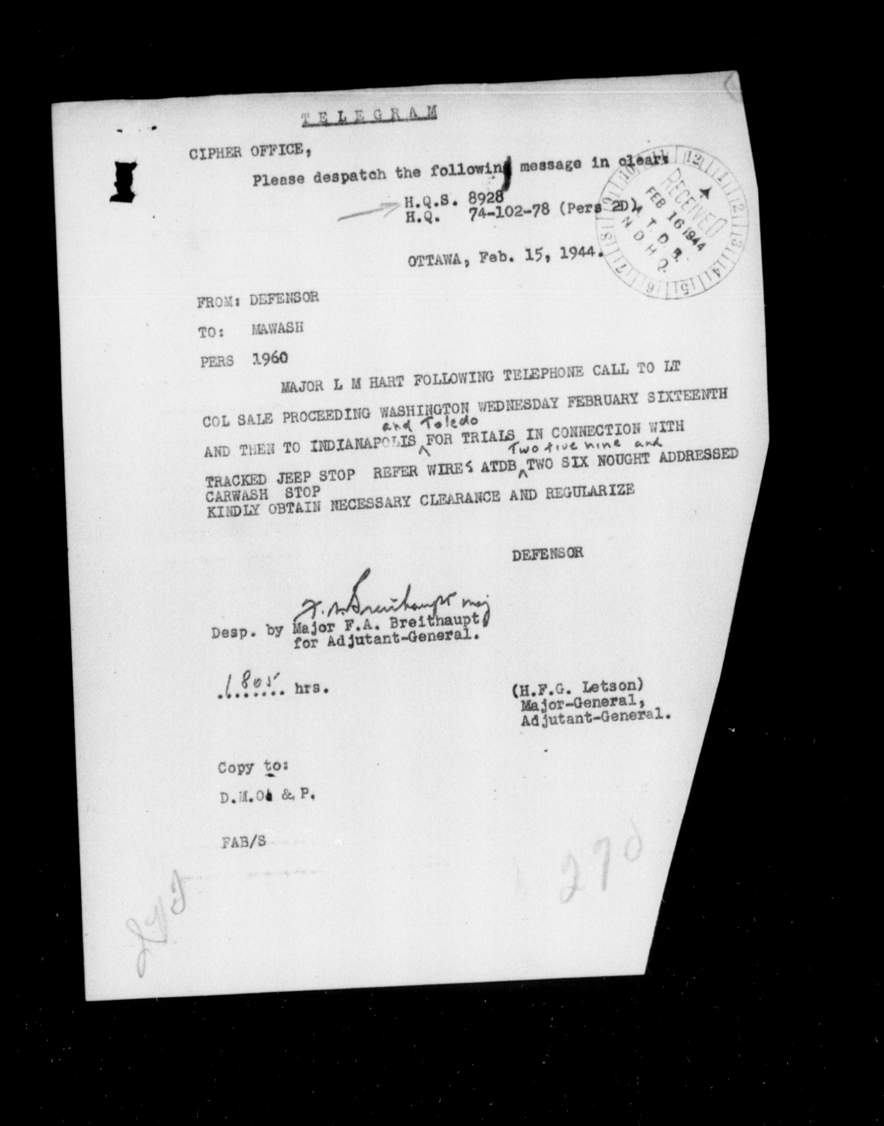 1903 Headquarters Central Registry, subject files, first series, 1866-1950 - 8395