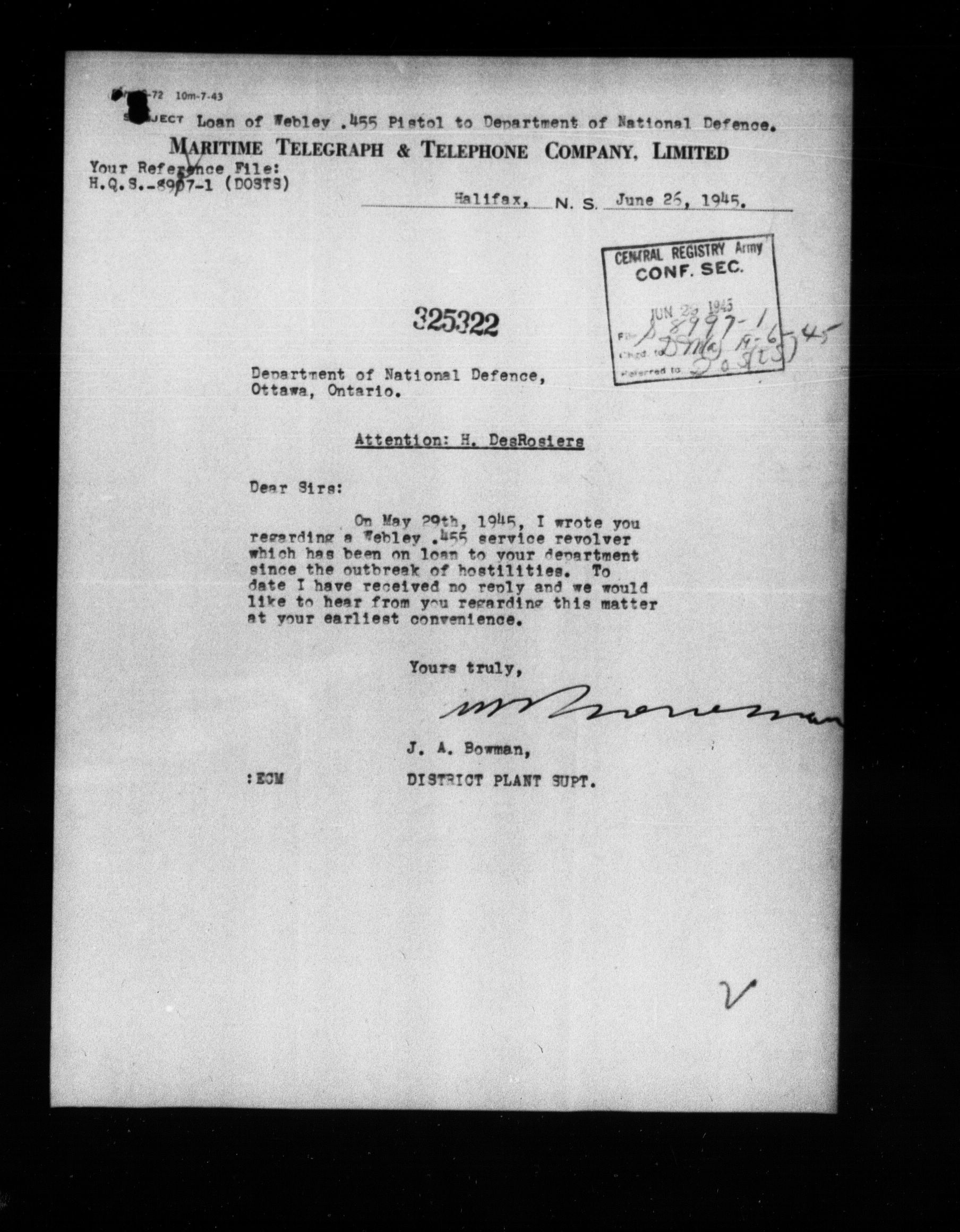 1903 Headquarters Central Registry, subject files, first series, 1866-1950 - 8402