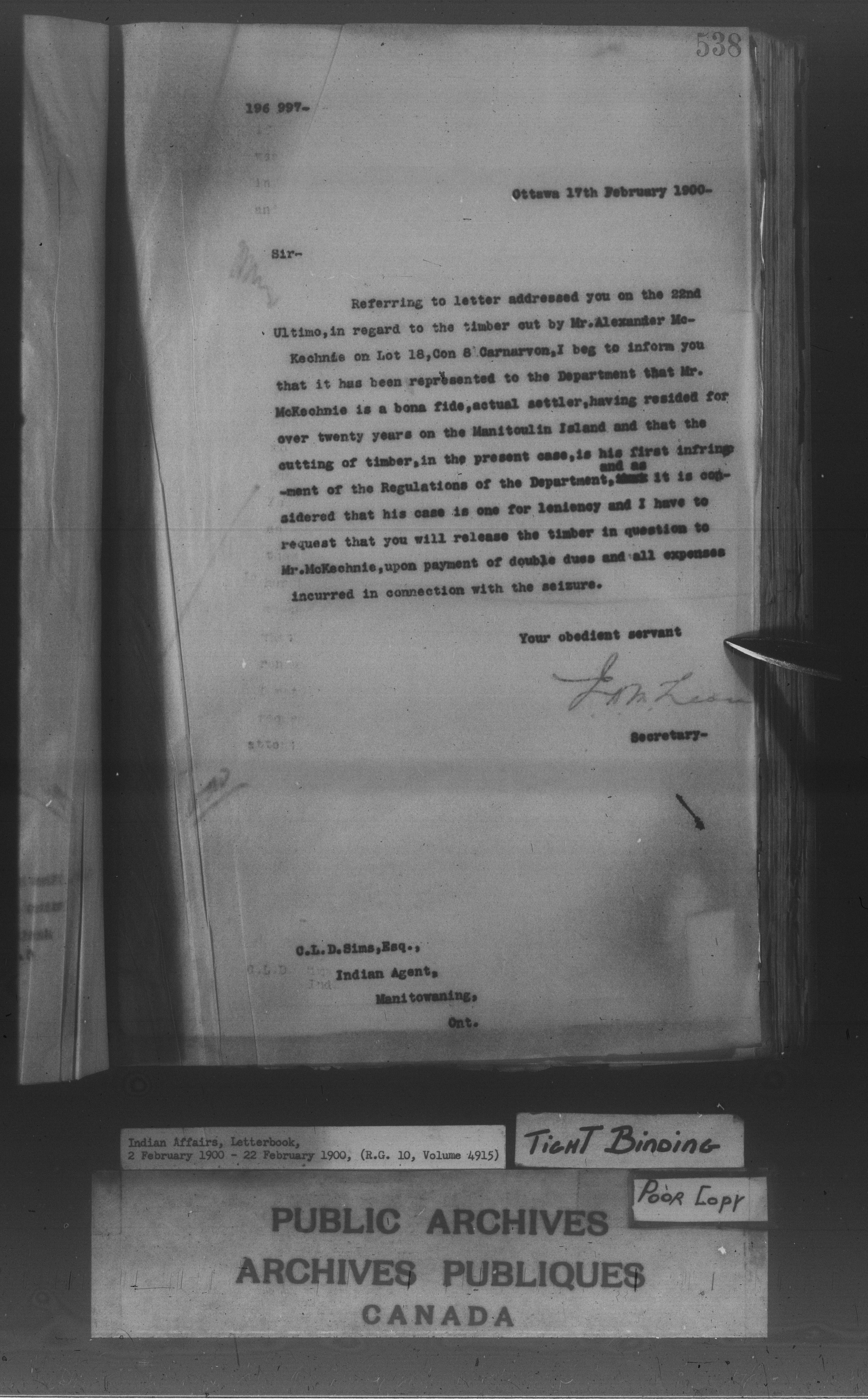 Department of Indian Affairs, Headquarters central registry system : First series : C-8456