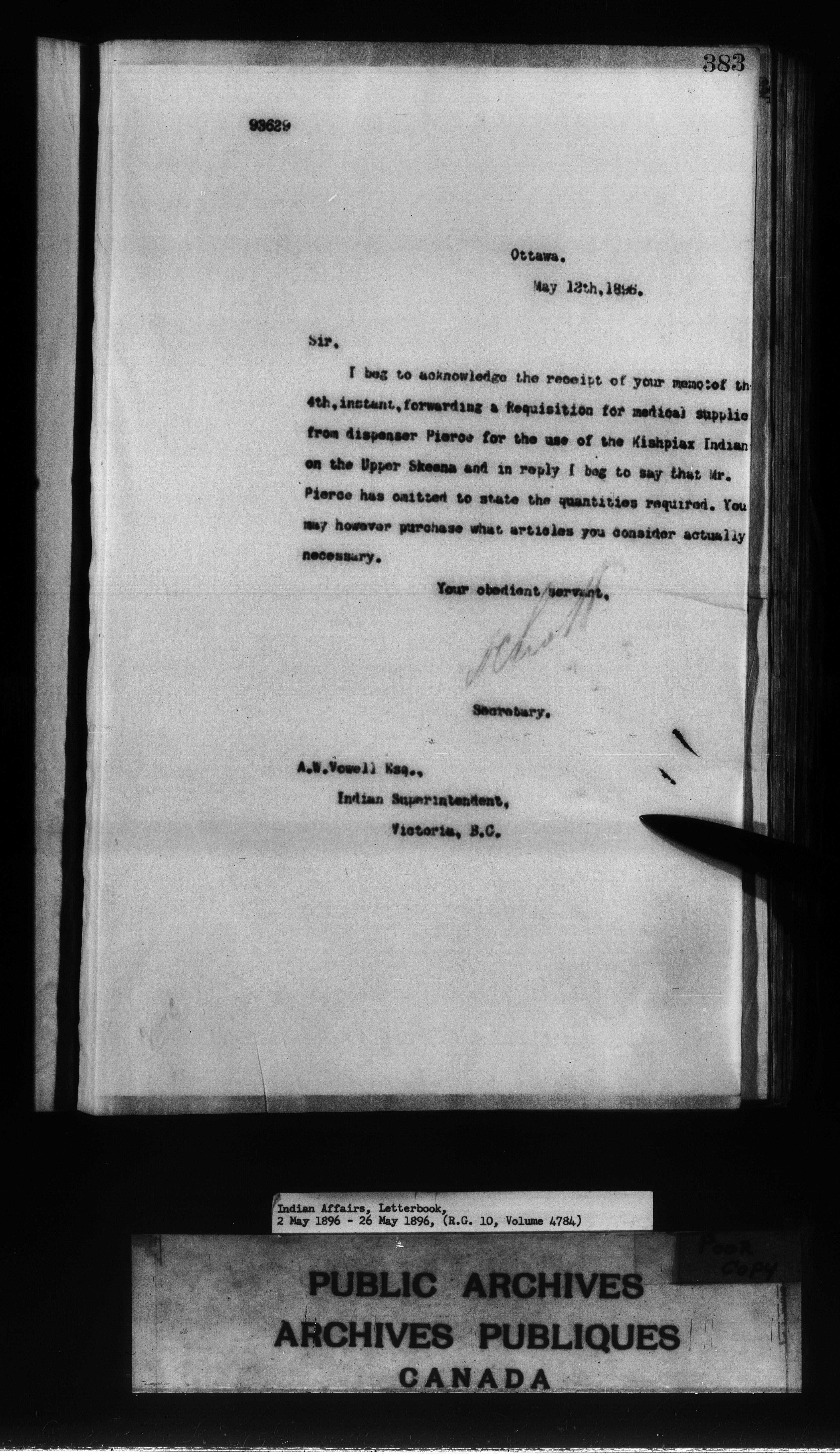 Department of Indian Affairs, Headquarters central registry system : First series - 8482