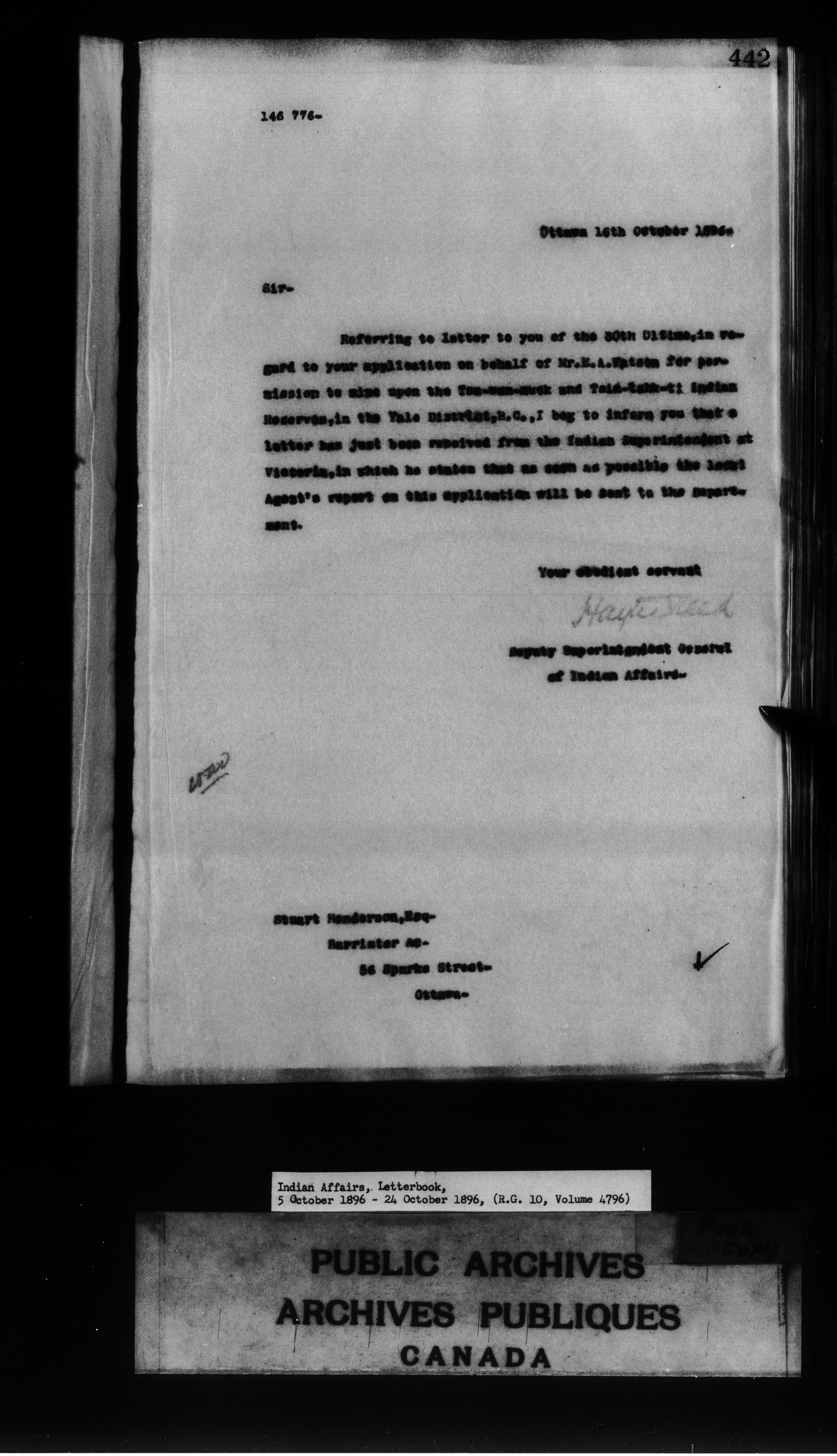 Department of Indian Affairs, Headquarters central registry system : First series - 8485