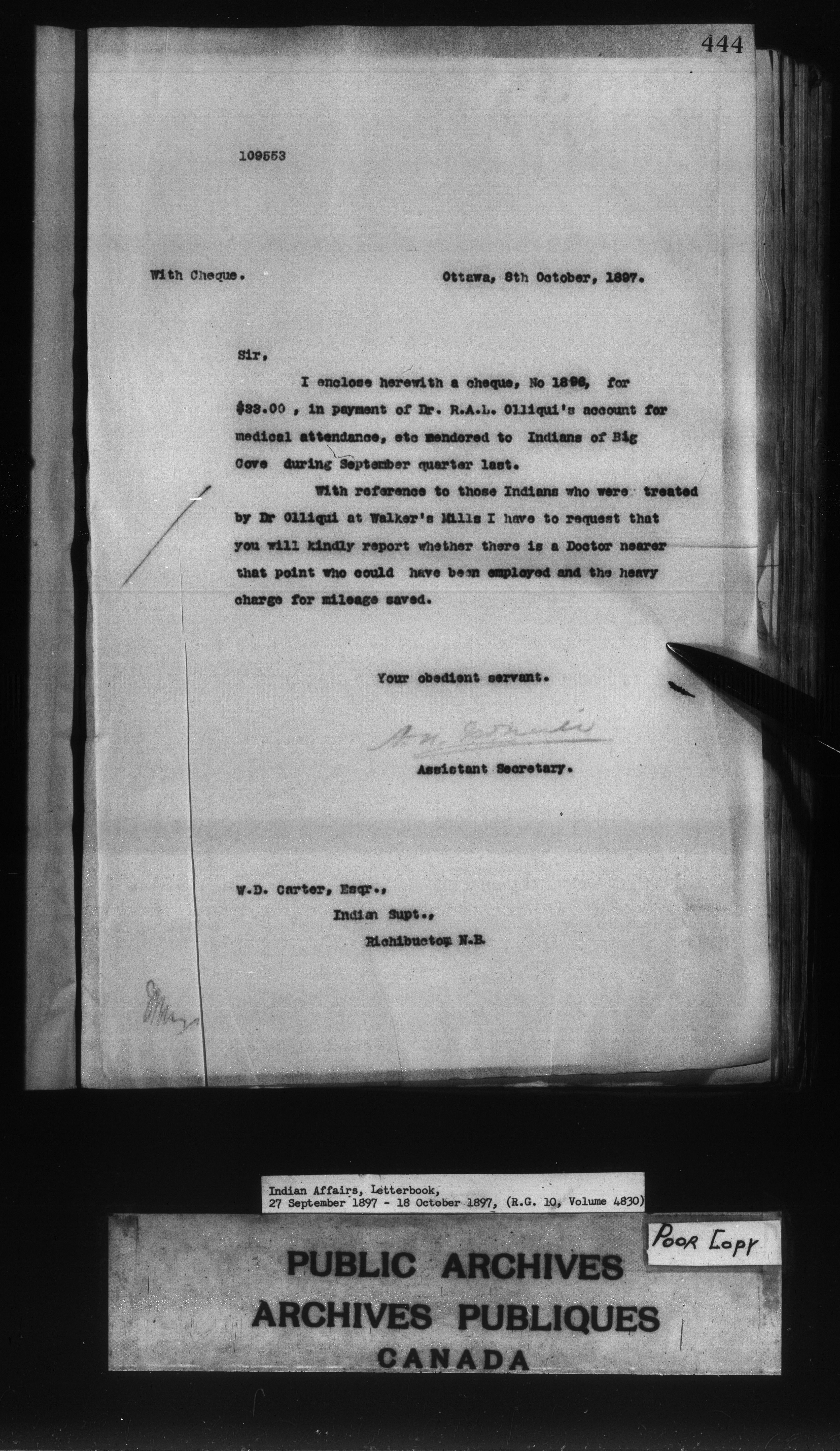 Department of Indian Affairs, Headquarters central registry system : First series - 8496