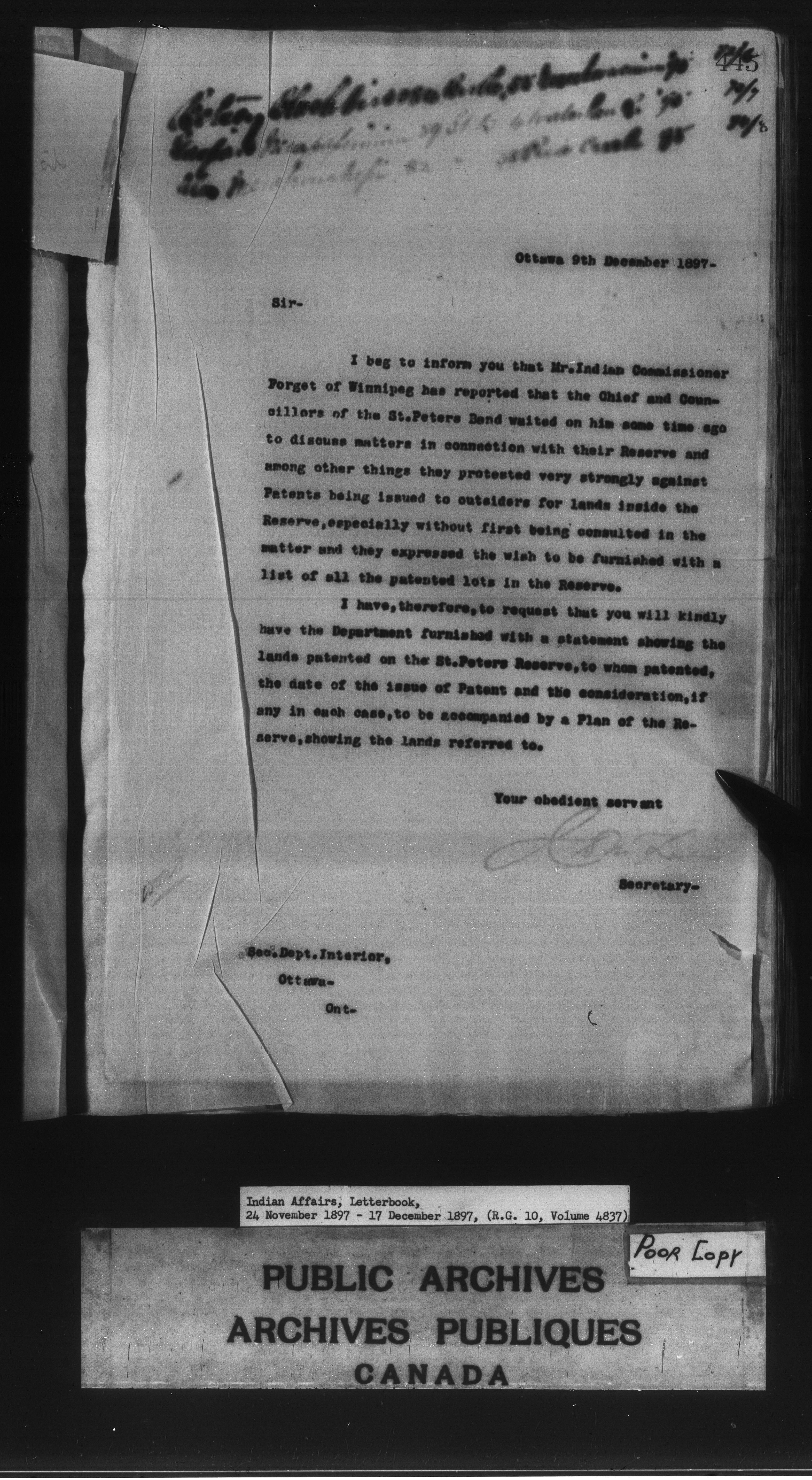 Department of Indian Affairs, Headquarters central registry system : First series : C-8498