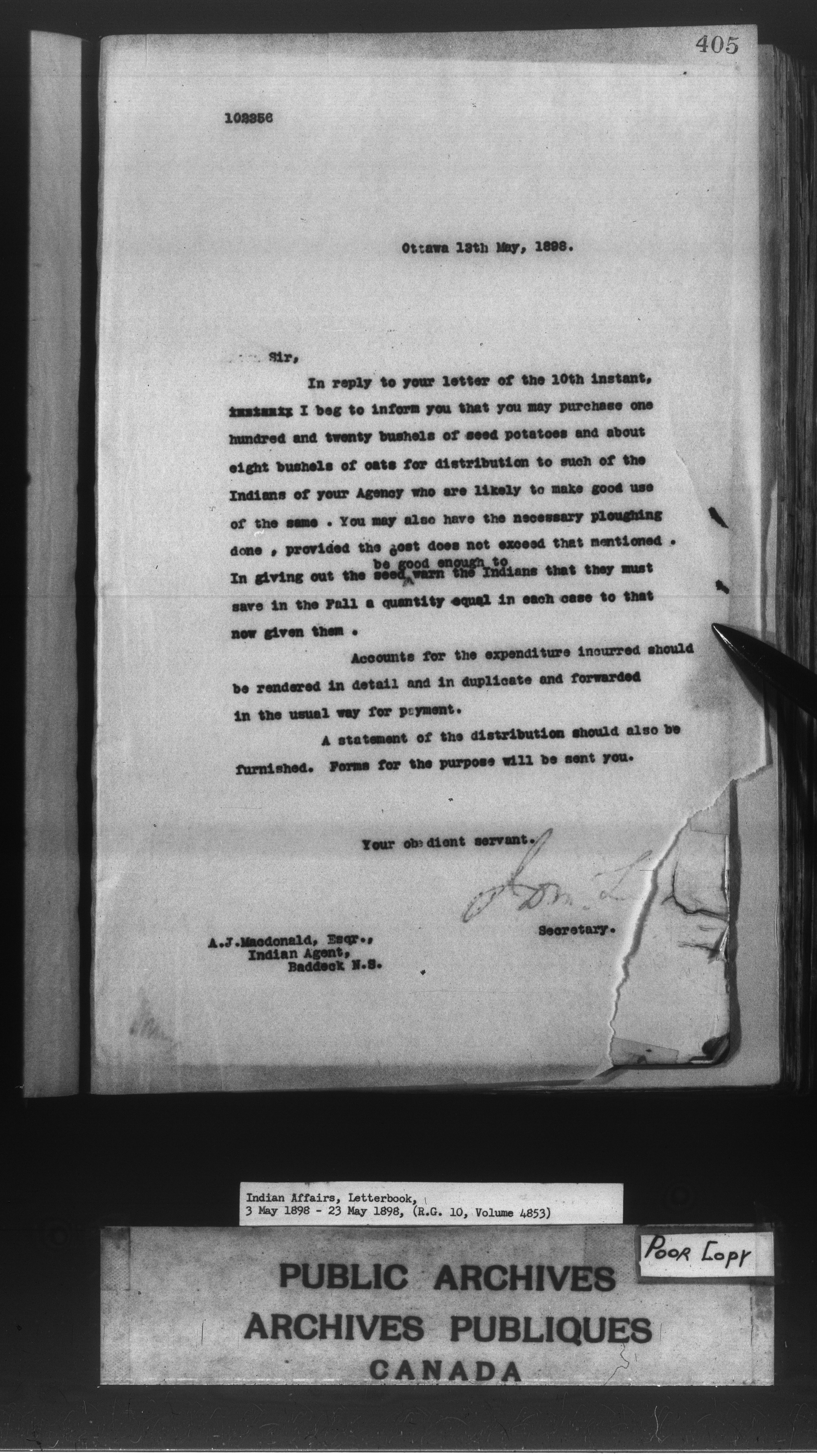 Department of Indian Affairs, Headquarters central registry system : First series - 8504