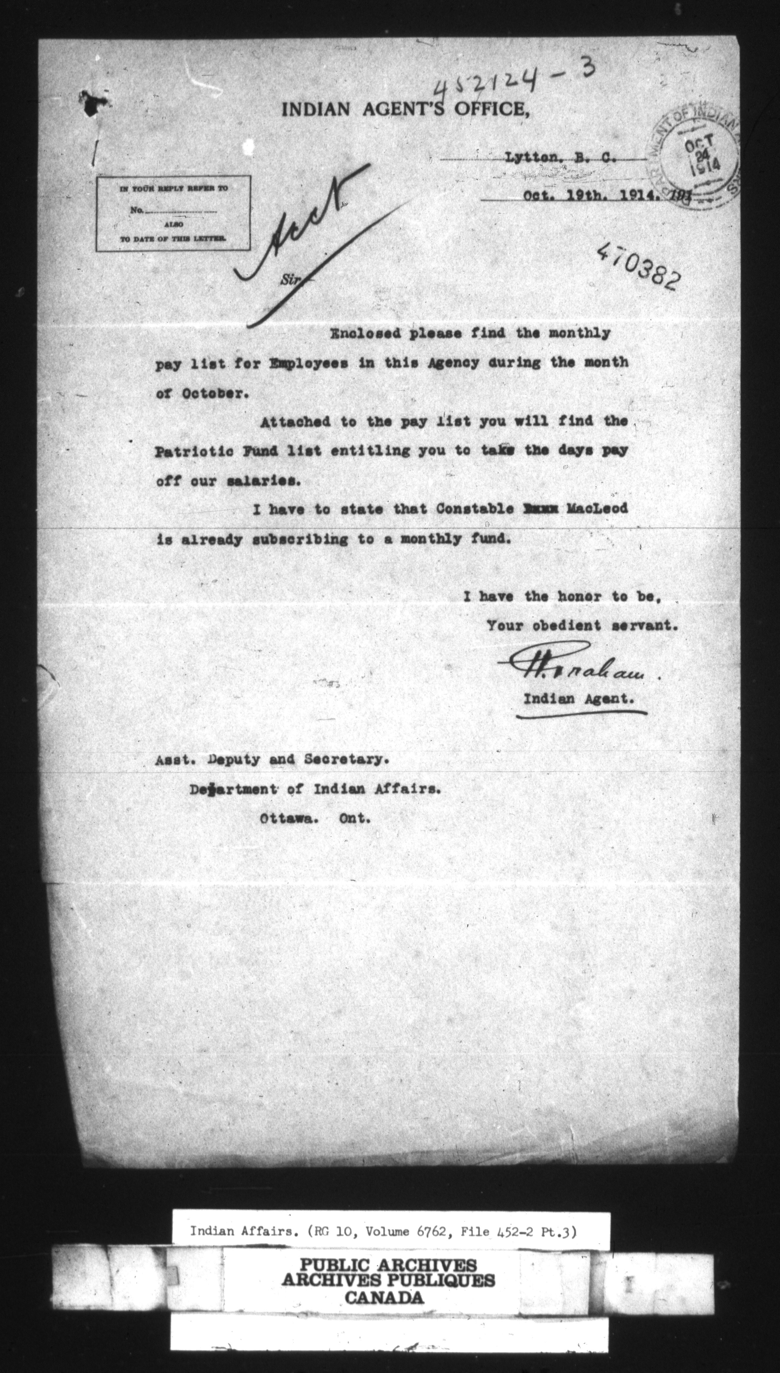 Department of Indian Affairs, Headquarters central registry system : First series : C-8509