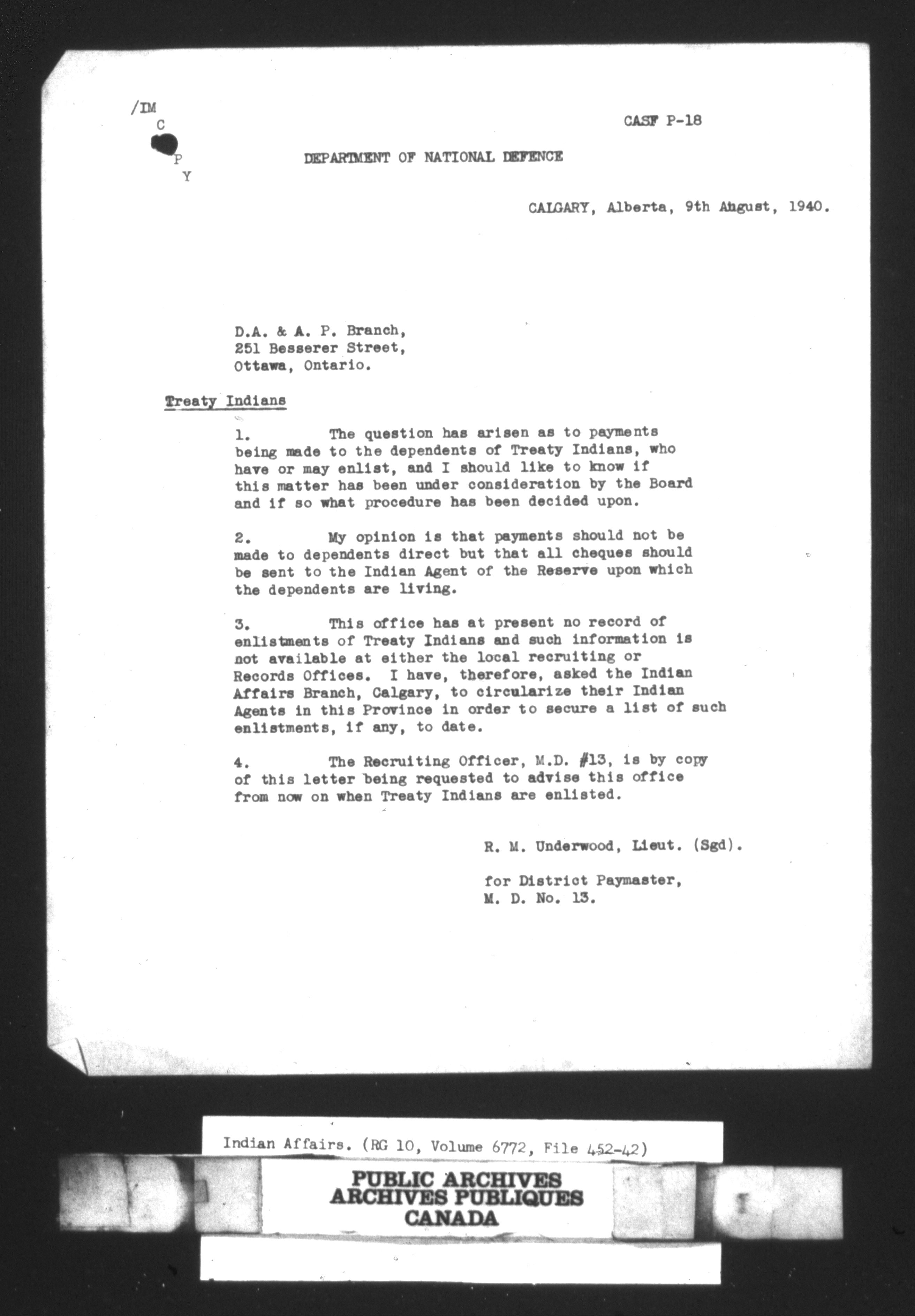Department of Indian Affairs, Headquarters central registry system : First series : C-8515