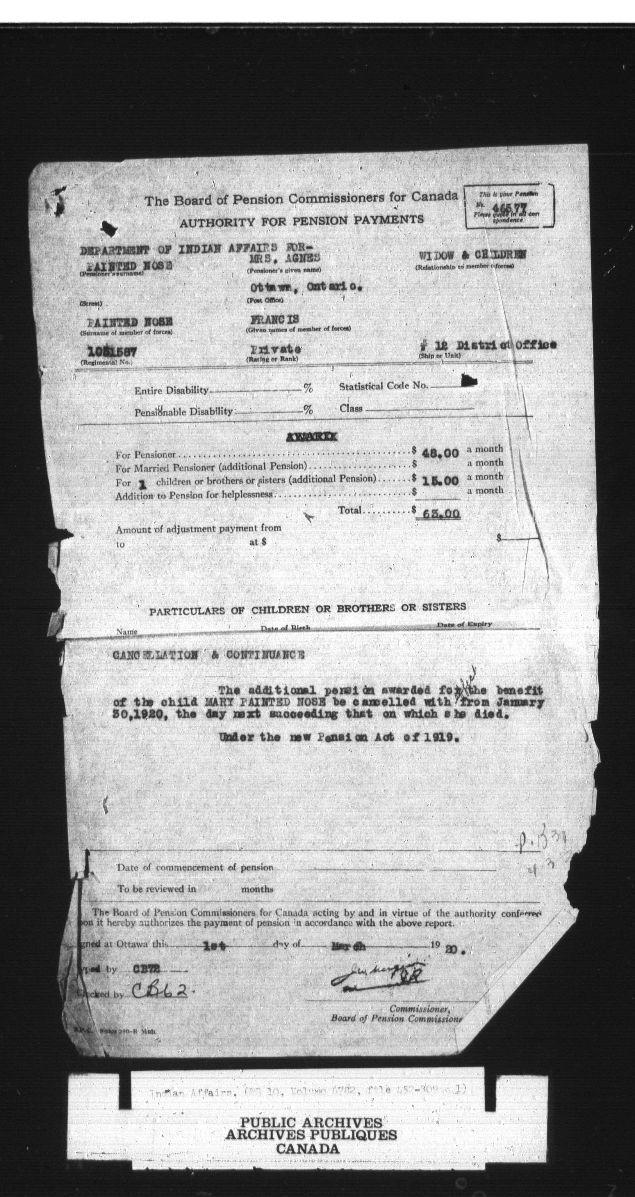 Department of Indian Affairs, Headquarters central registry system : First series; First Nations Soldiers (Volume 6782, file 452-307 to vol. 6784, file 452-361) - 8522
