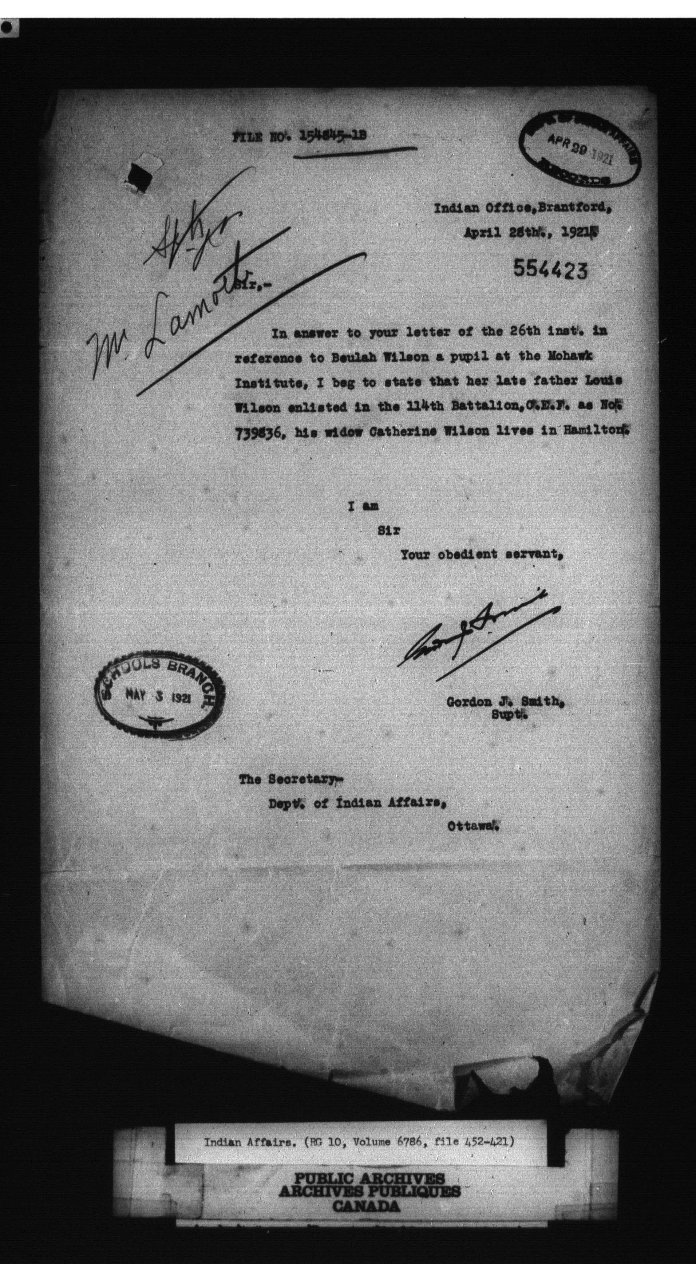 Department of Indian Affairs, Headquarters central registry system : First series; First Nations Soldiers