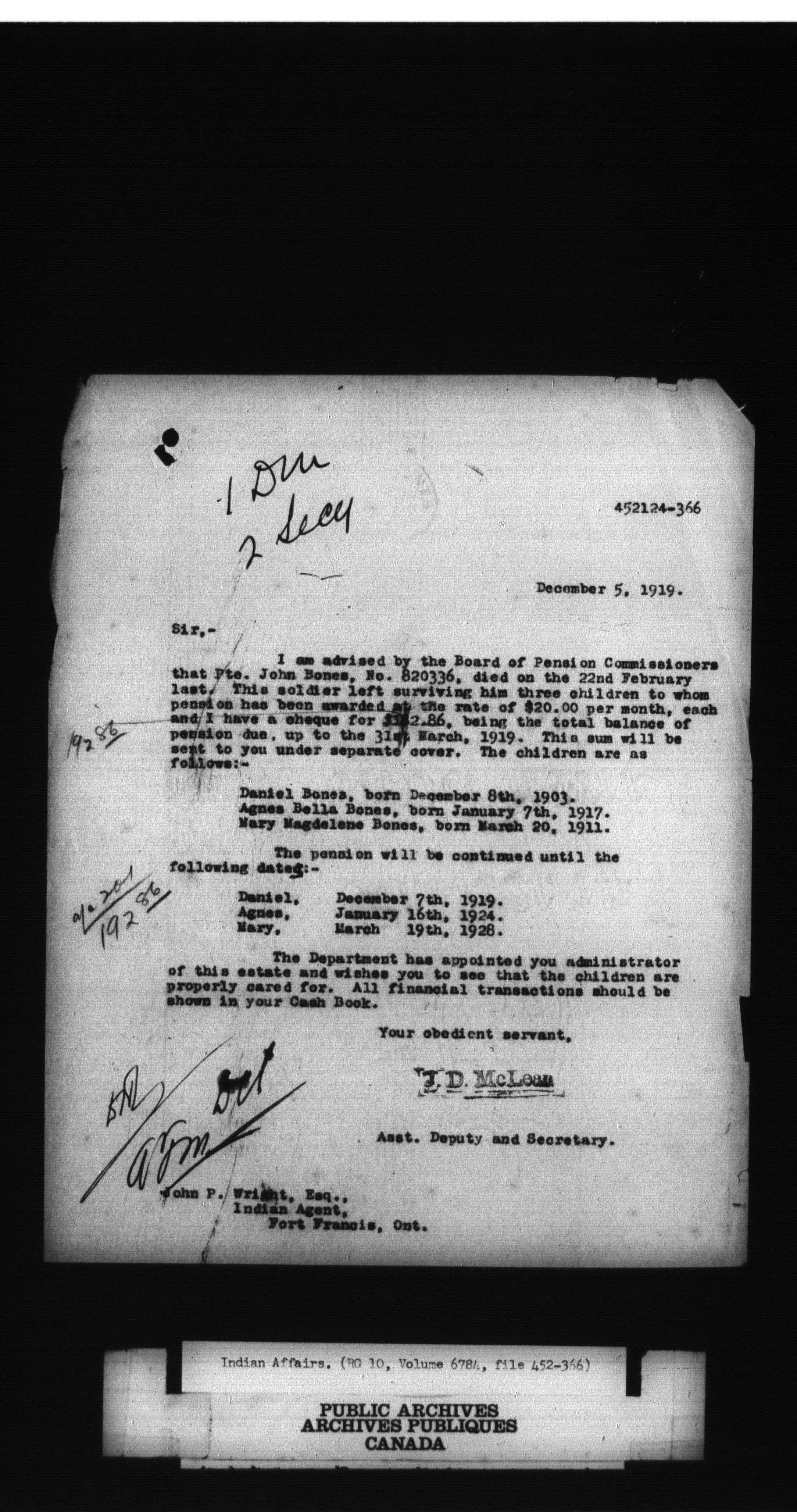 Department of Indian Affairs, Headquarters central registry system : First series; First Nations Soldiers