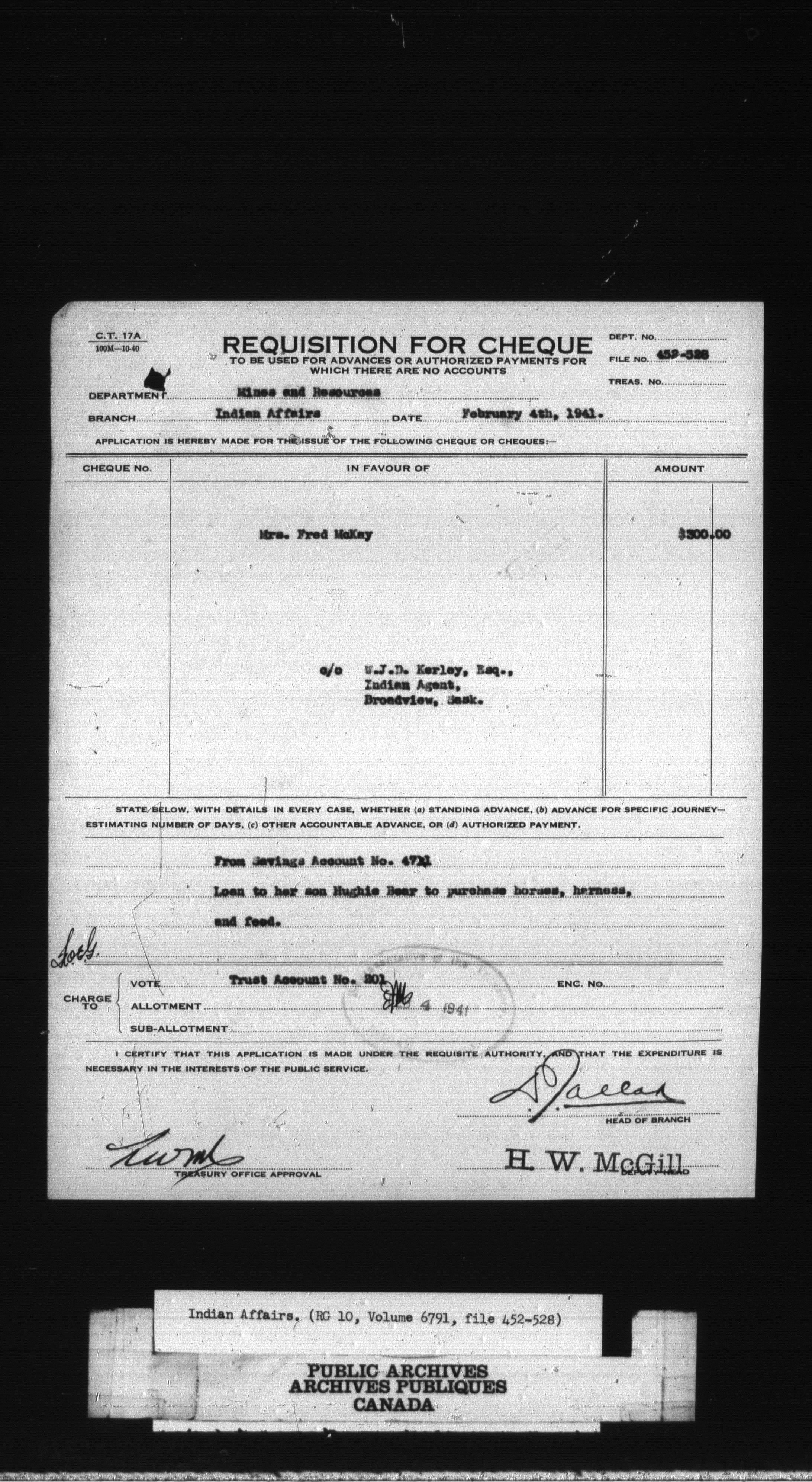 Department of Indian Affairs, Headquarters central registry system : First series; First Nations Soldiers (Volume 6788, file 452-468 to vol. 6791, file 452-529, pt. 1) - 8525