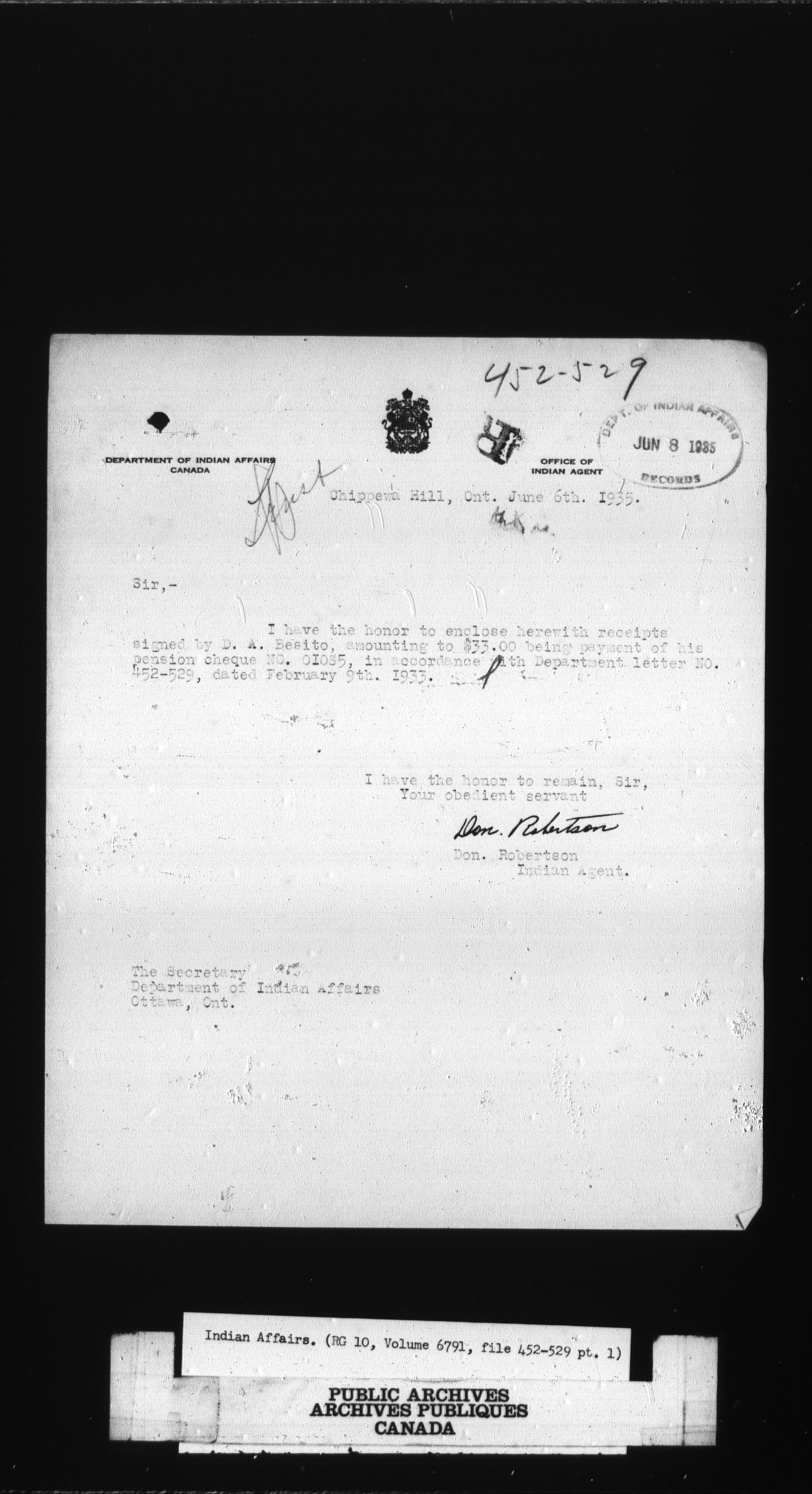 Department of Indian Affairs, Headquarters central registry system : First series; First Nations Soldiers - C-8526