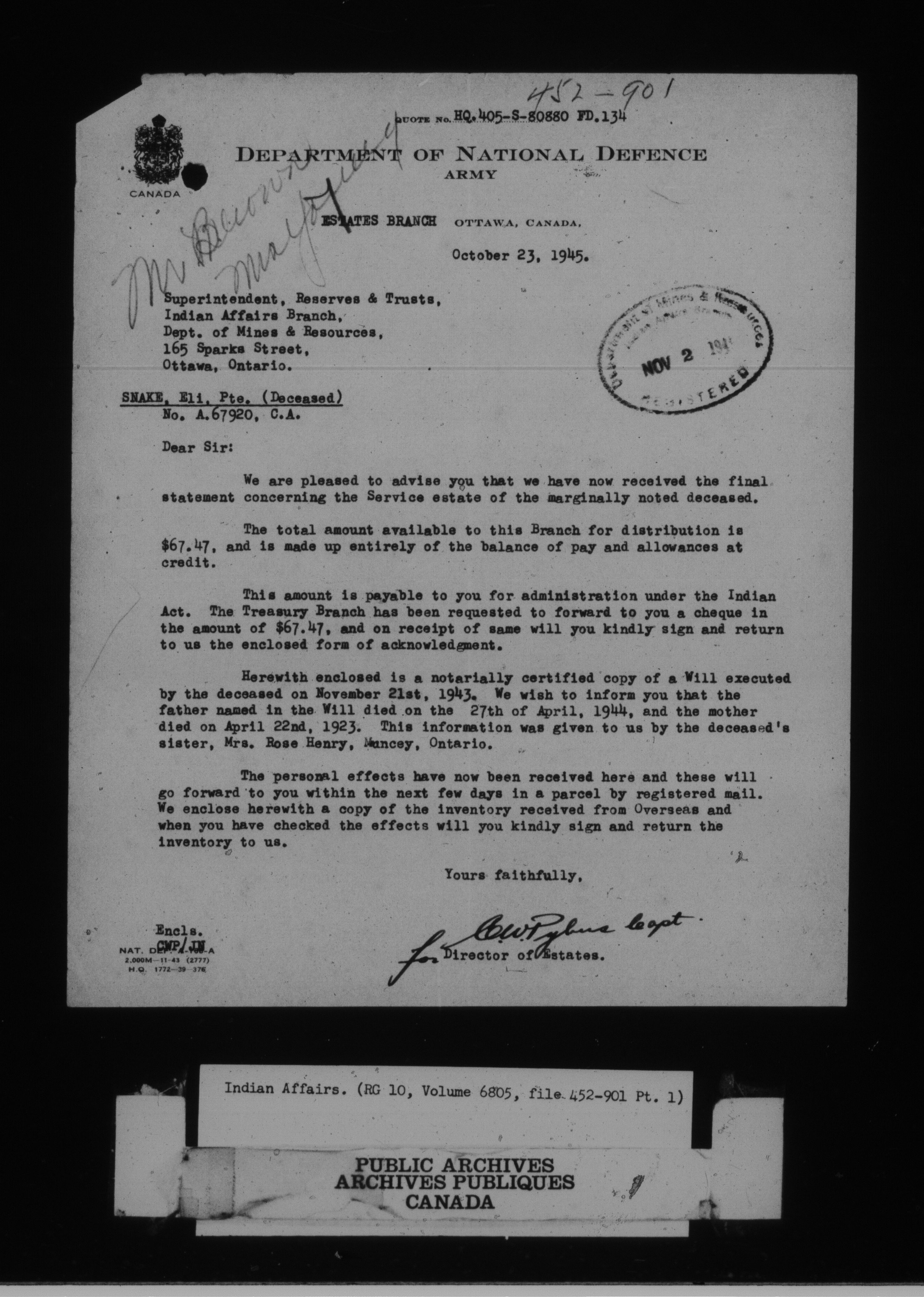Department of Indian Affairs, Headquarters central registry system : First series - 8530