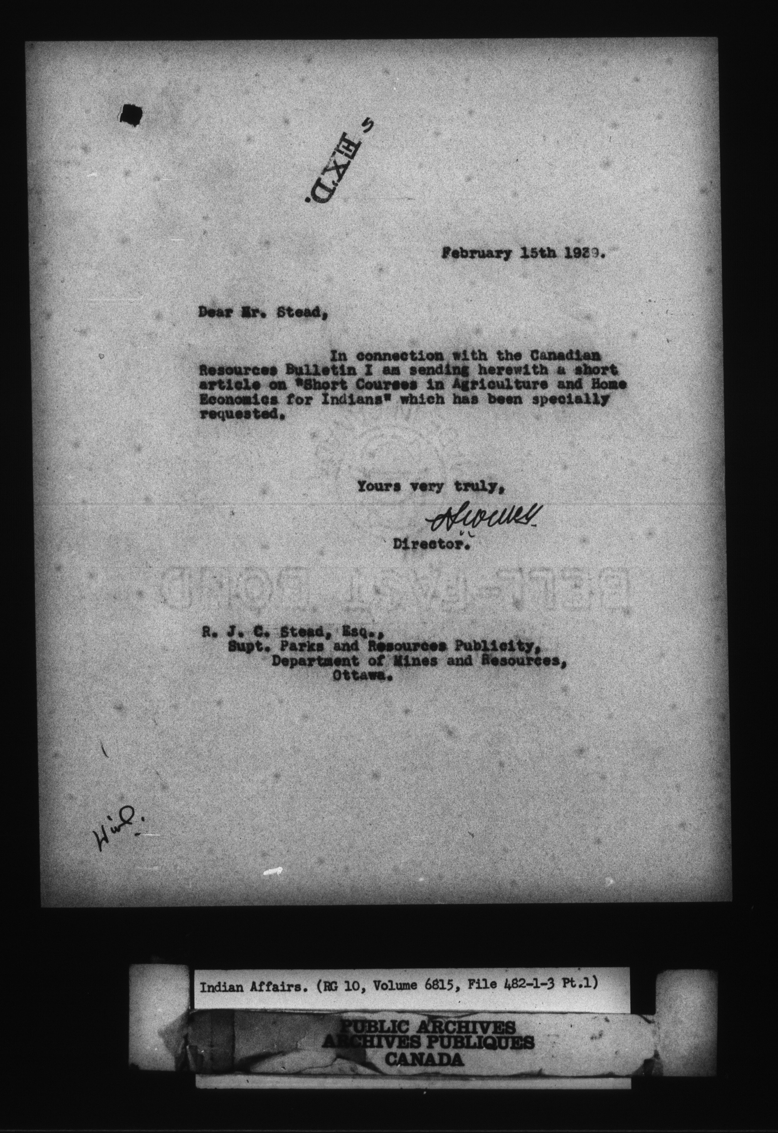 Department of Indian Affairs, Headquarters central registry system : First series - 8537