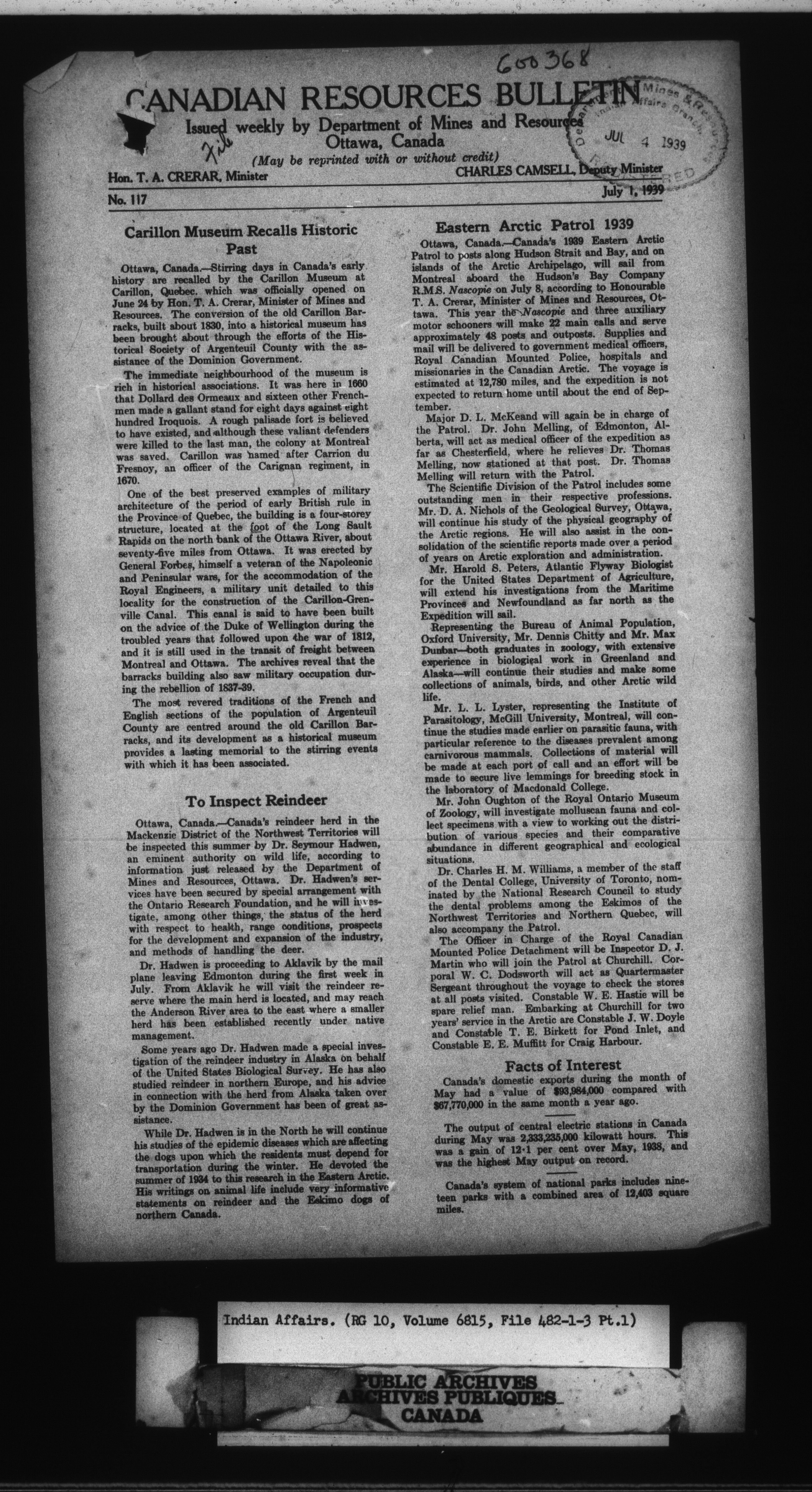 Department of Indian Affairs, Headquarters central registry system : First series - 8537