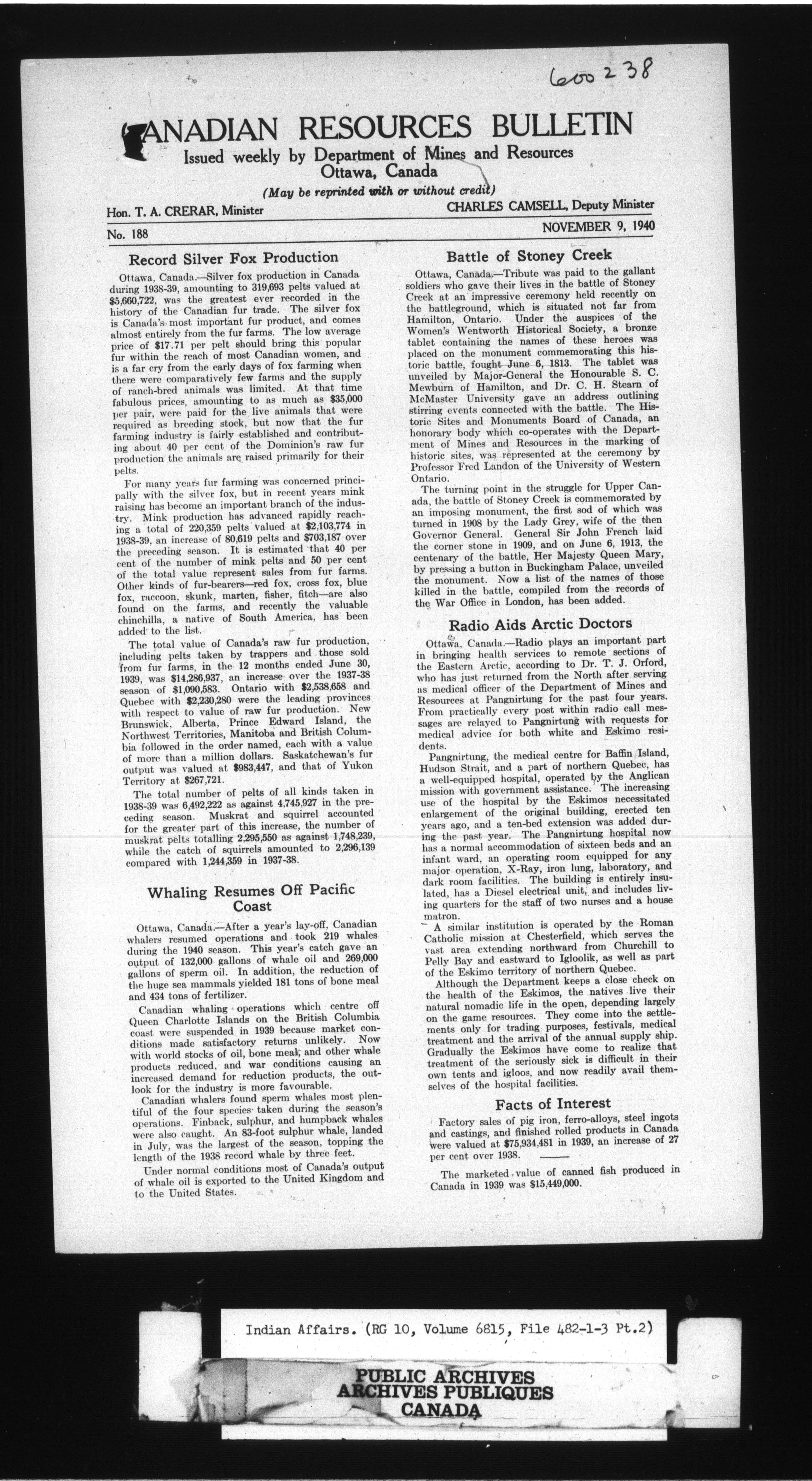 Department of Indian Affairs, Headquarters central registry system : First series - 8538