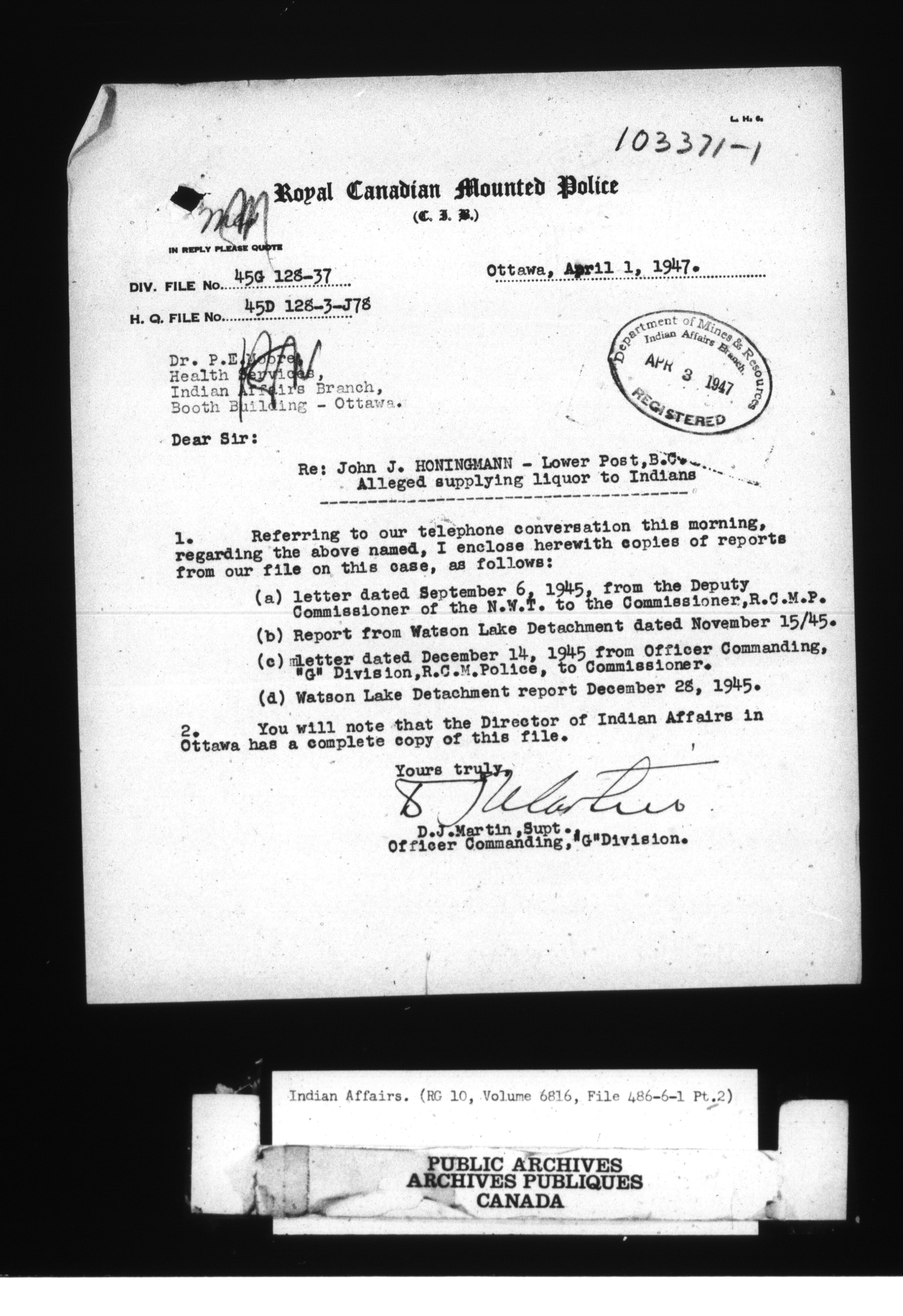 Department of Indian Affairs, Headquarters central registry system : First series : C-8539
