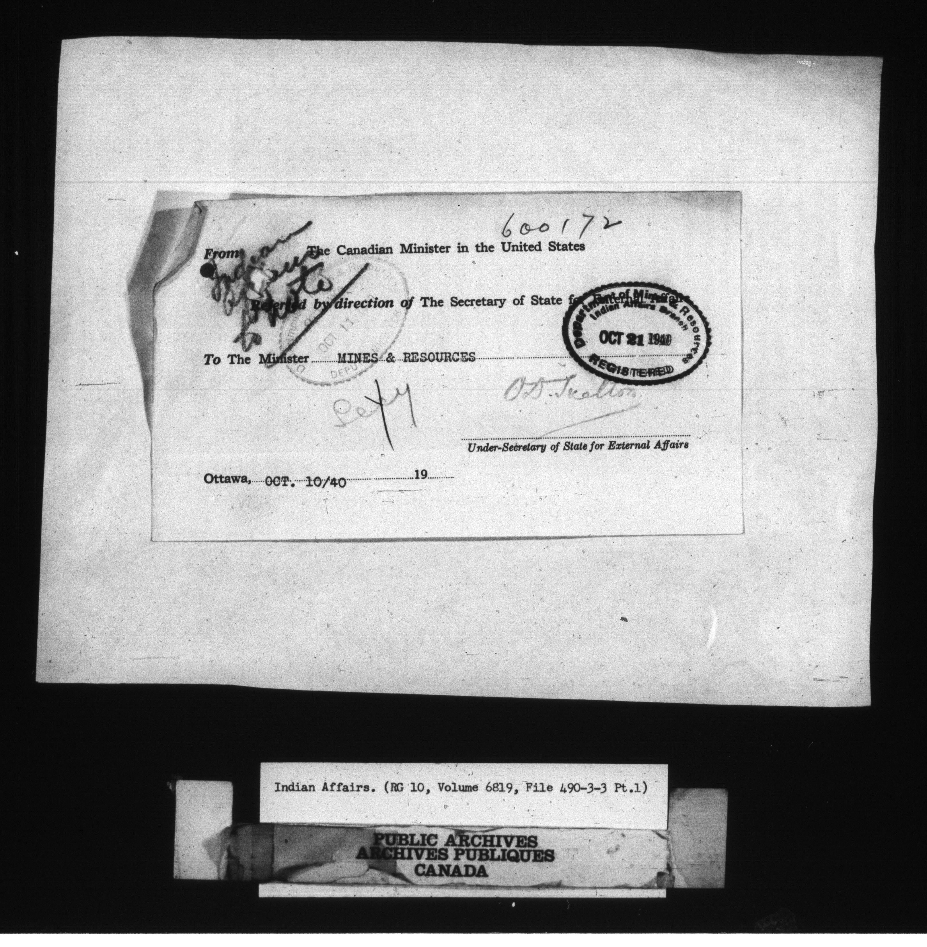 Department of Indian Affairs, Headquarters central registry system : First series : C-8541