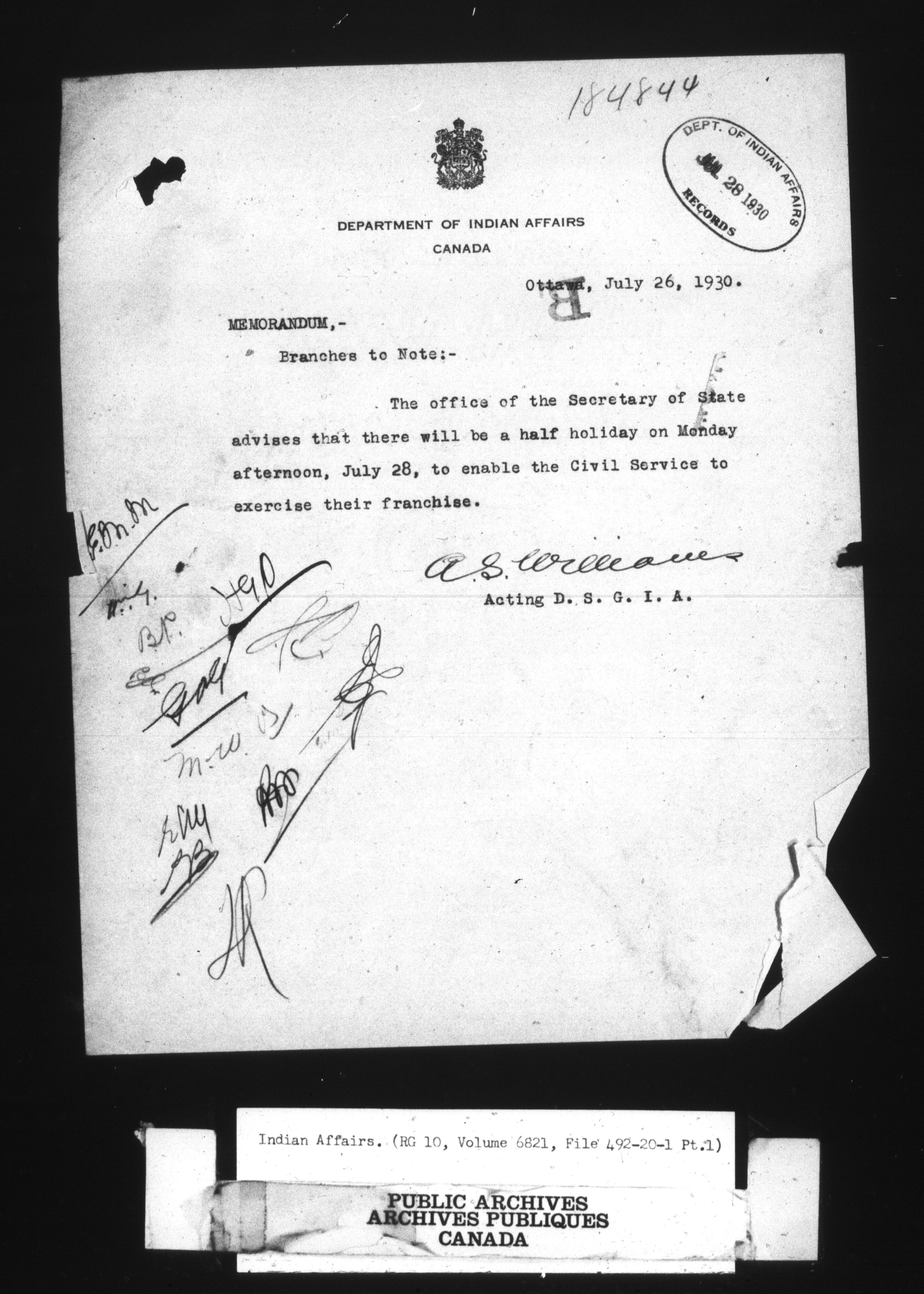 Department of Indian Affairs, Headquarters central registry system : First series : C-8542