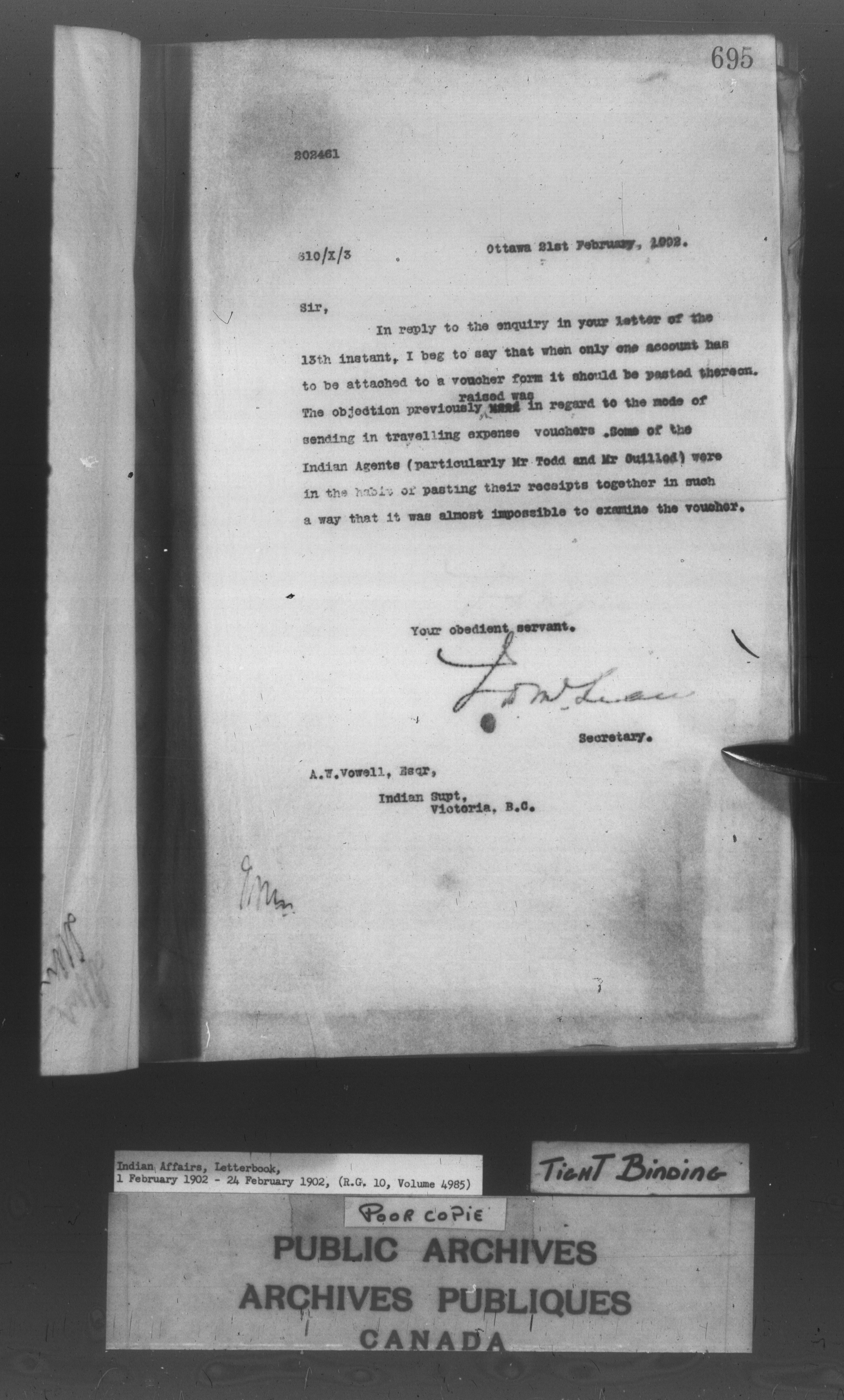 Department of Indian Affairs : Letterbooks of out-going correspondence relating to the administration of Indian Affairs in both eastern and western Canada, 1871-1920 - 8557