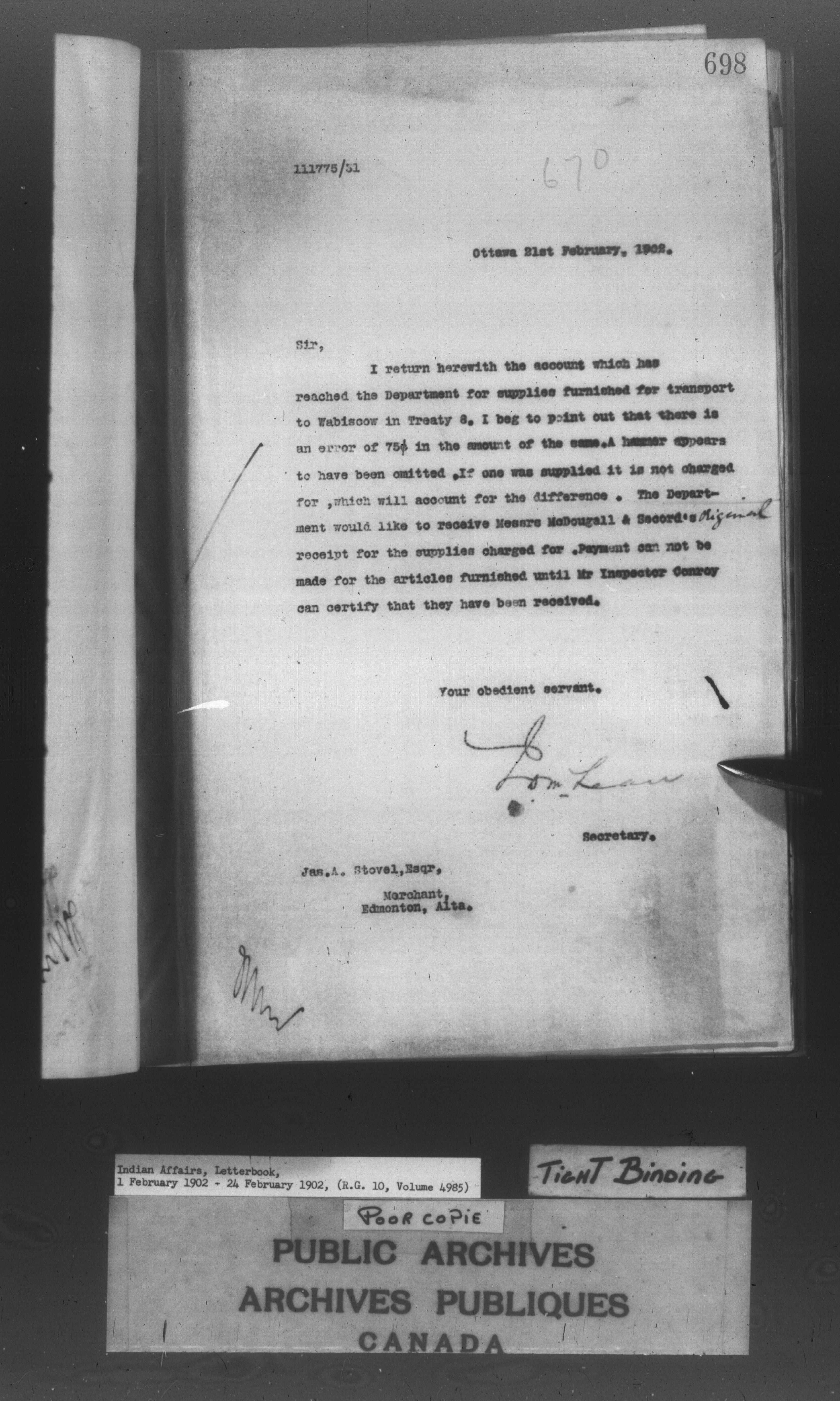 Department of Indian Affairs : Letterbooks of out-going correspondence relating to the administration of Indian Affairs in both eastern and western Canada, 1871-1920 - 8557