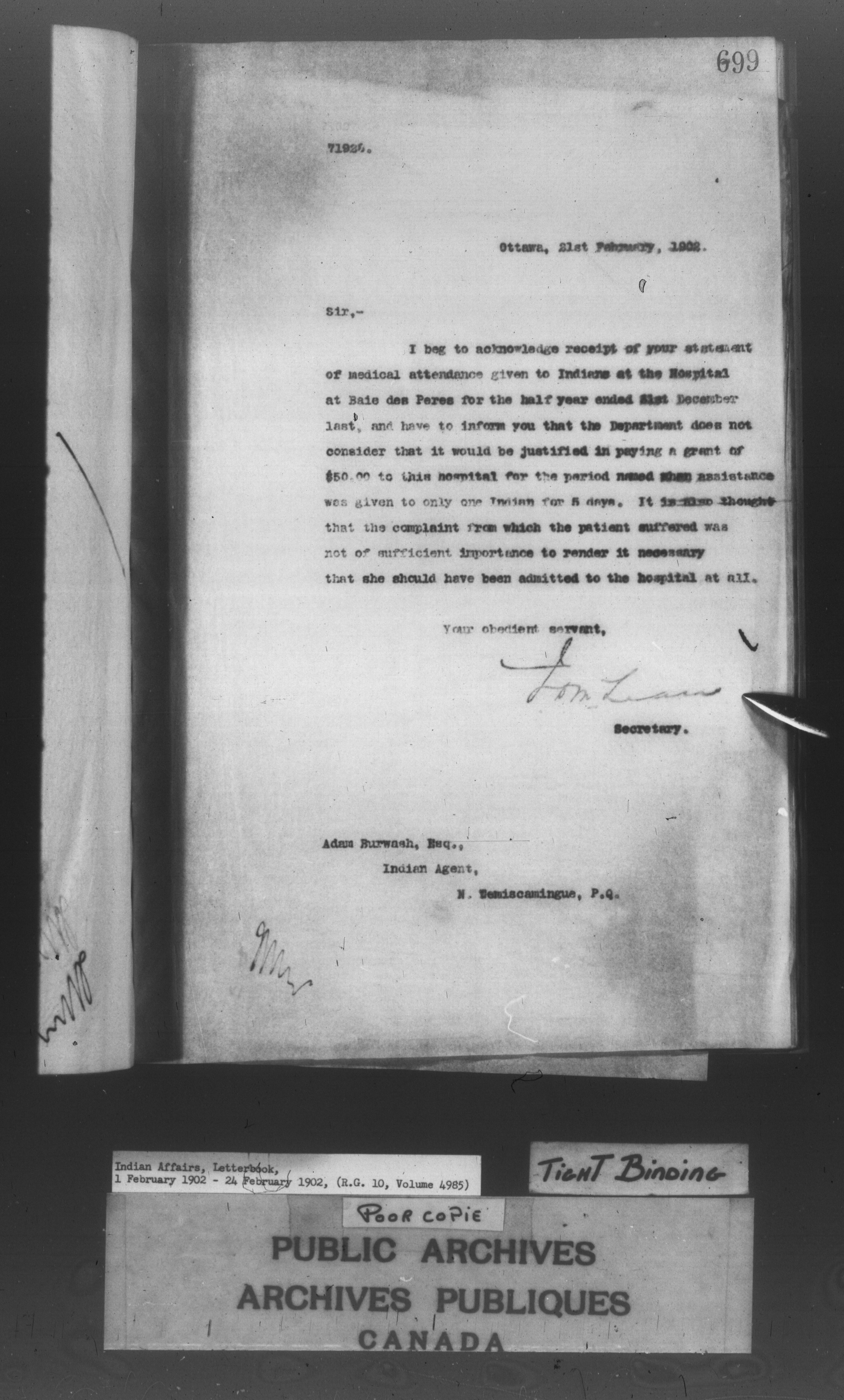 Department of Indian Affairs : Letterbooks of out-going correspondence relating to the administration of Indian Affairs in both eastern and western Canada, 1871-1920 - 8557