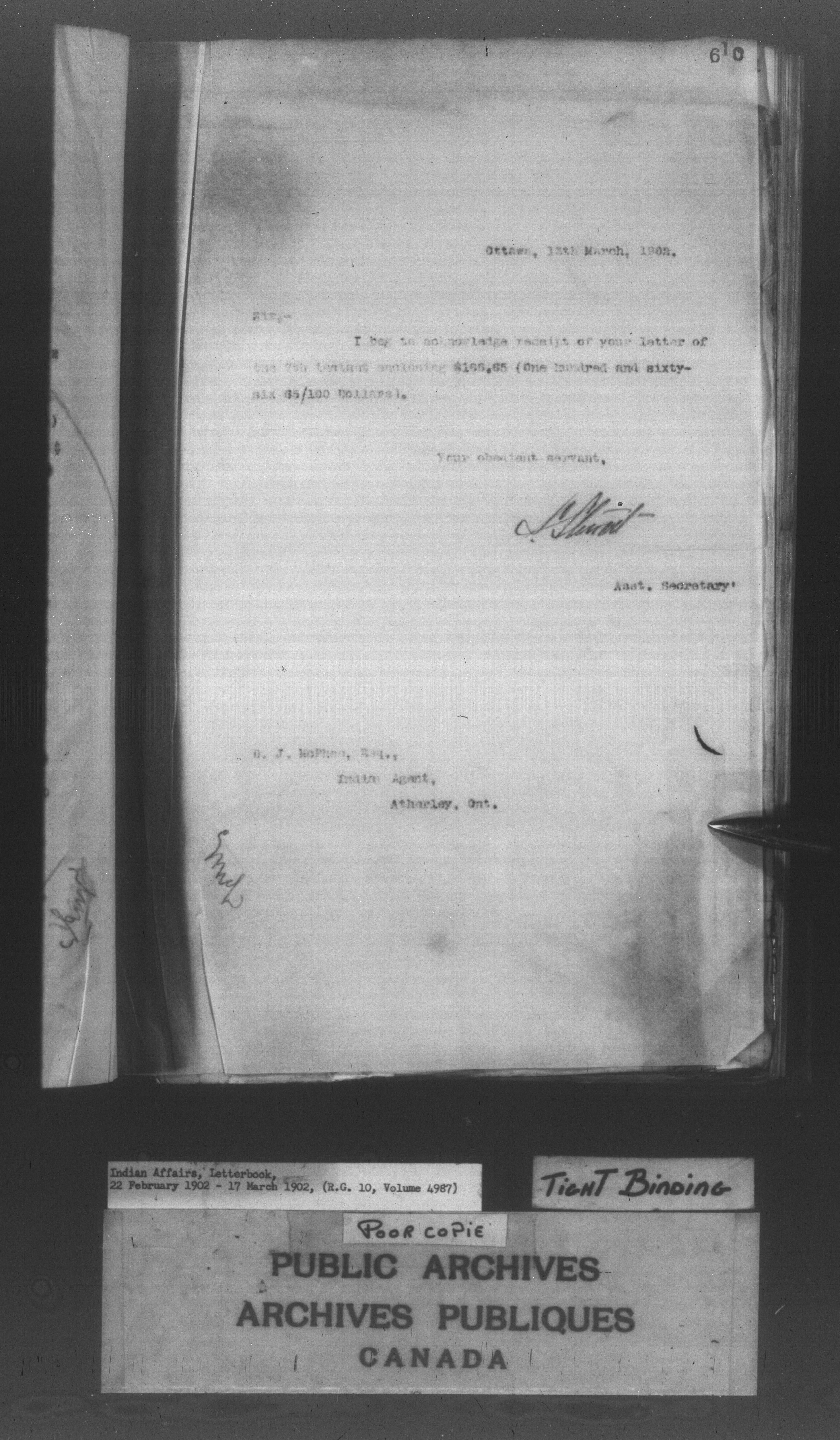 Department of Indian Affairs : Letterbooks of out-going correspondence relating to the administration of Indian Affairs in both eastern and western Canada, 1871-1920 - 8557