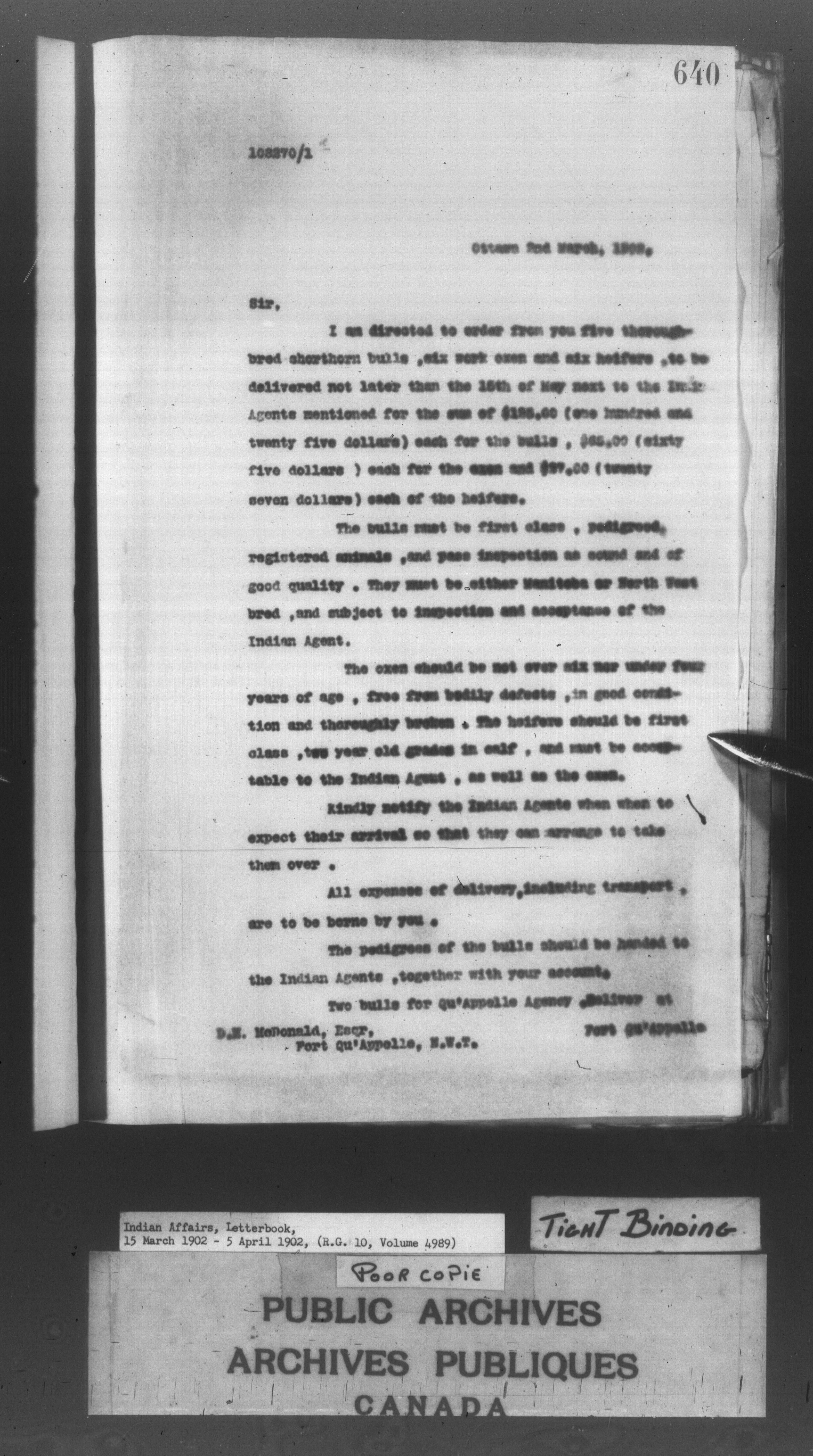 Department of Indian Affairs : Letterbooks of out-going correspondence relating to the administration of Indian Affairs in both eastern and western Canada, 1871-1920 - 8559
