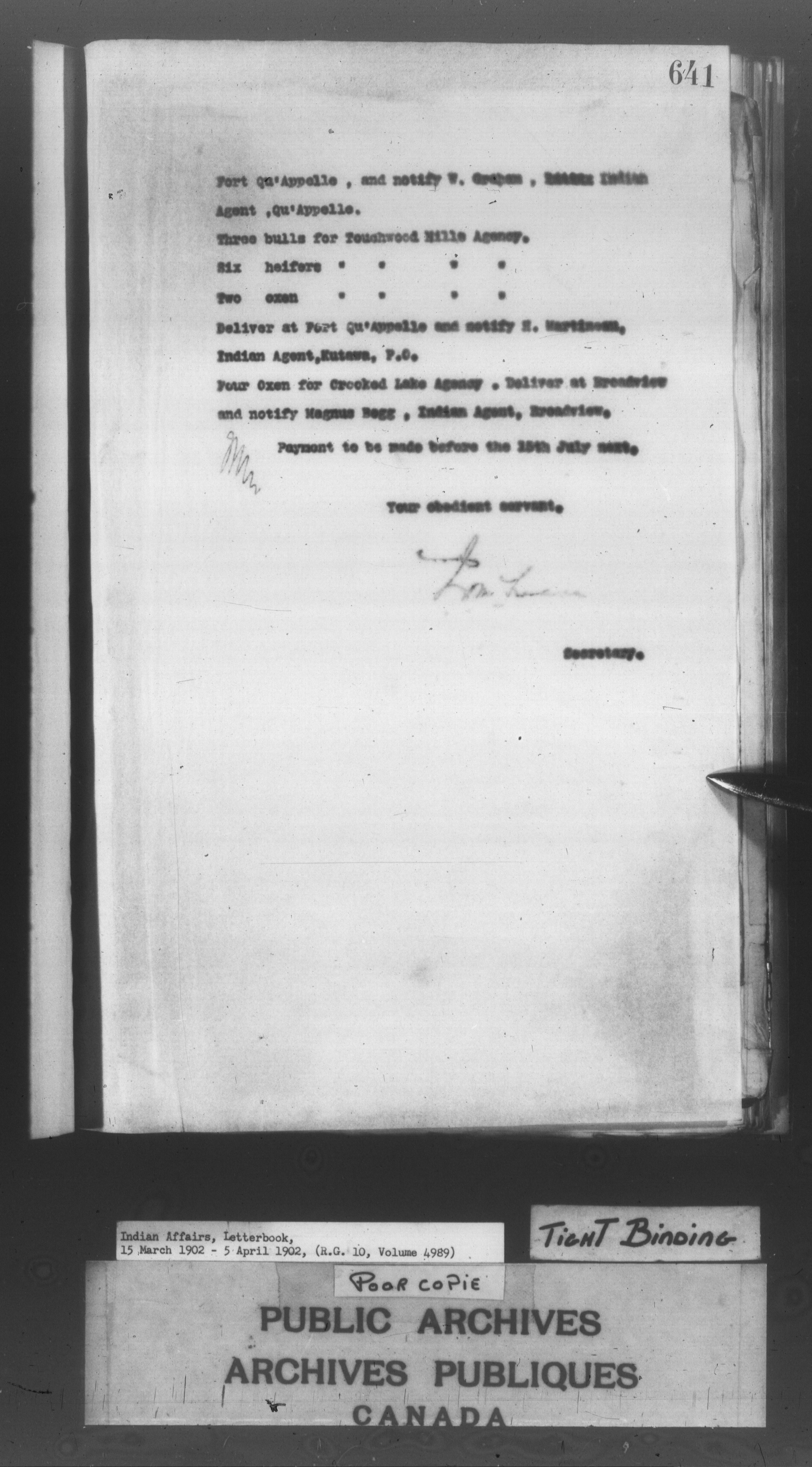 Department of Indian Affairs : Letterbooks of out-going correspondence relating to the administration of Indian Affairs in both eastern and western Canada, 1871-1920 - 8559