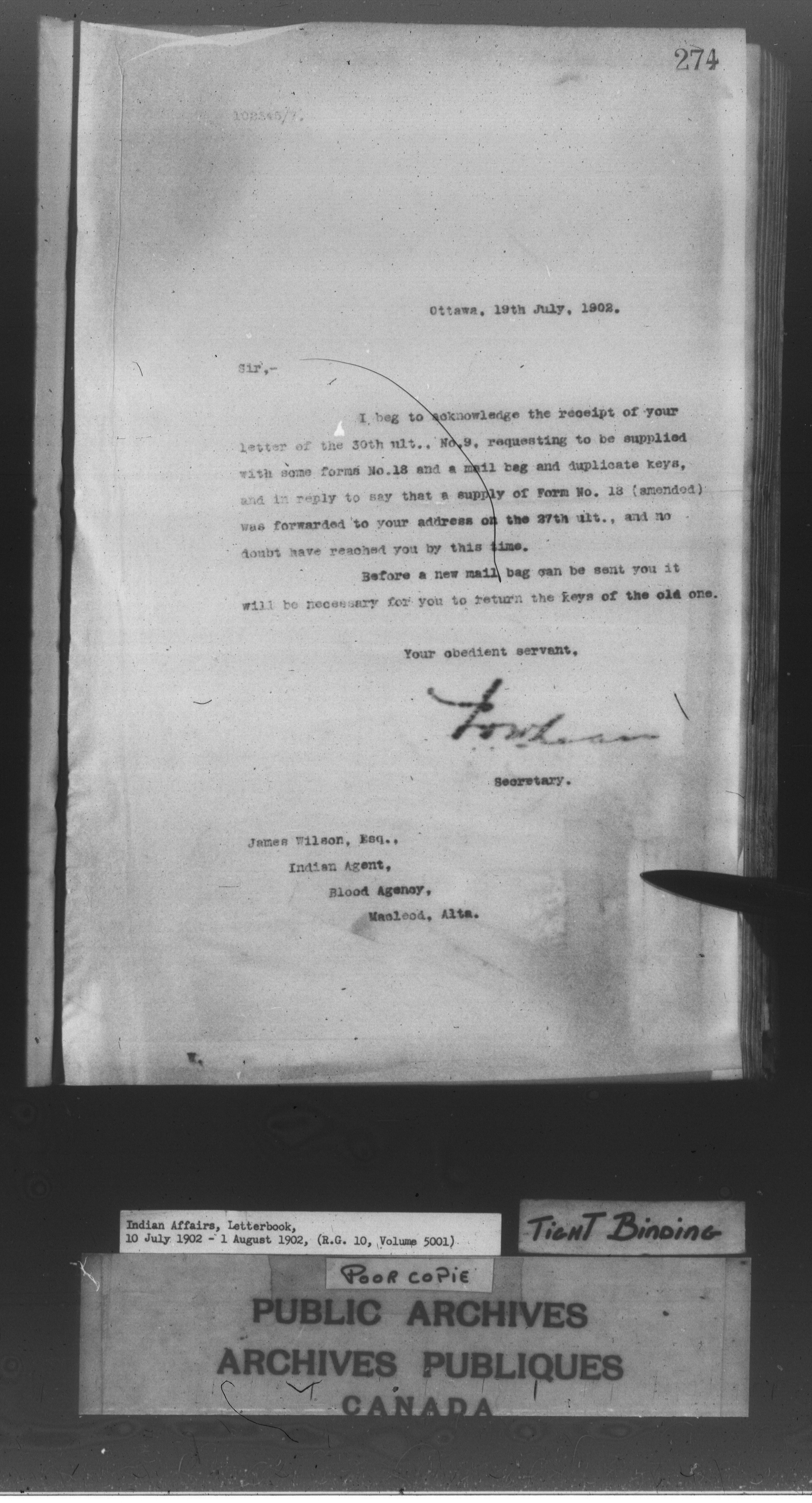 Department of Indian Affairs : Letterbooks of out-going correspondence relating to the administration of Indian Affairs in both eastern and western Canada, 1871-1920 - 8563
