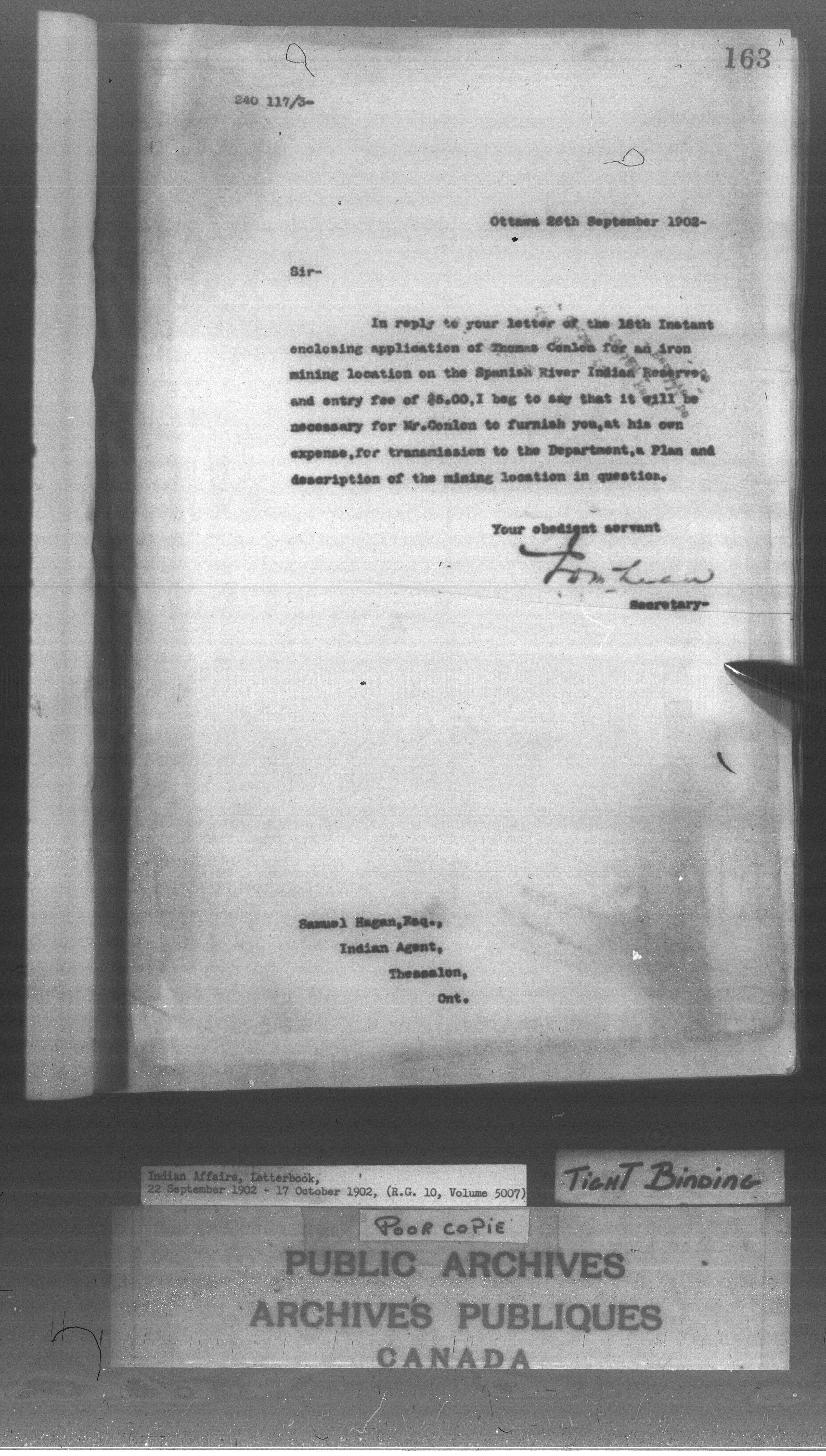 Department of Indian Affairs : Letterbooks of out-going correspondence relating to the administration of Indian Affairs in both eastern and western Canada, 1871-1920 - 8564