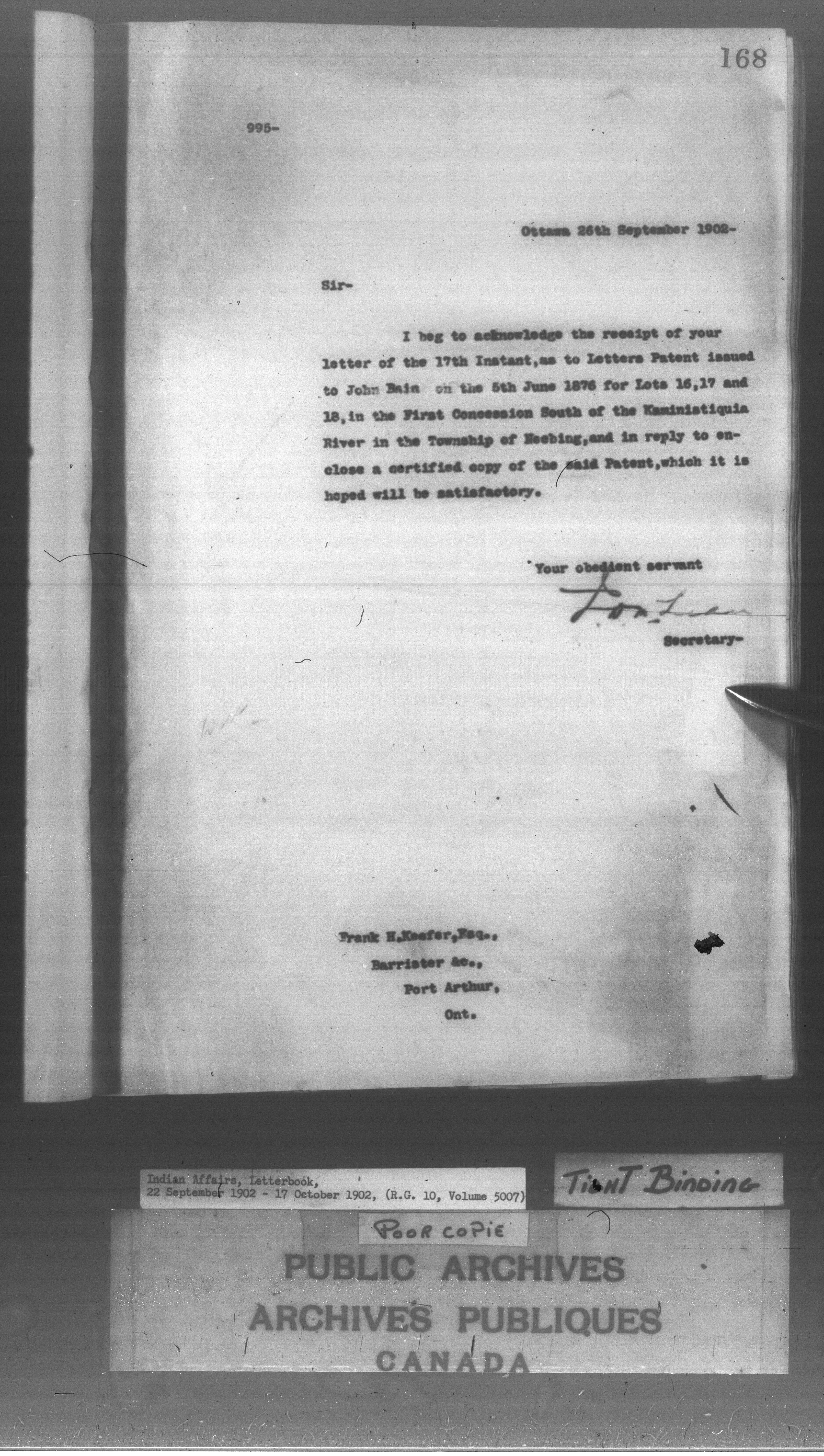 Department of Indian Affairs : Letterbooks of out-going correspondence relating to the administration of Indian Affairs in both eastern and western Canada, 1871-1920 - 8564