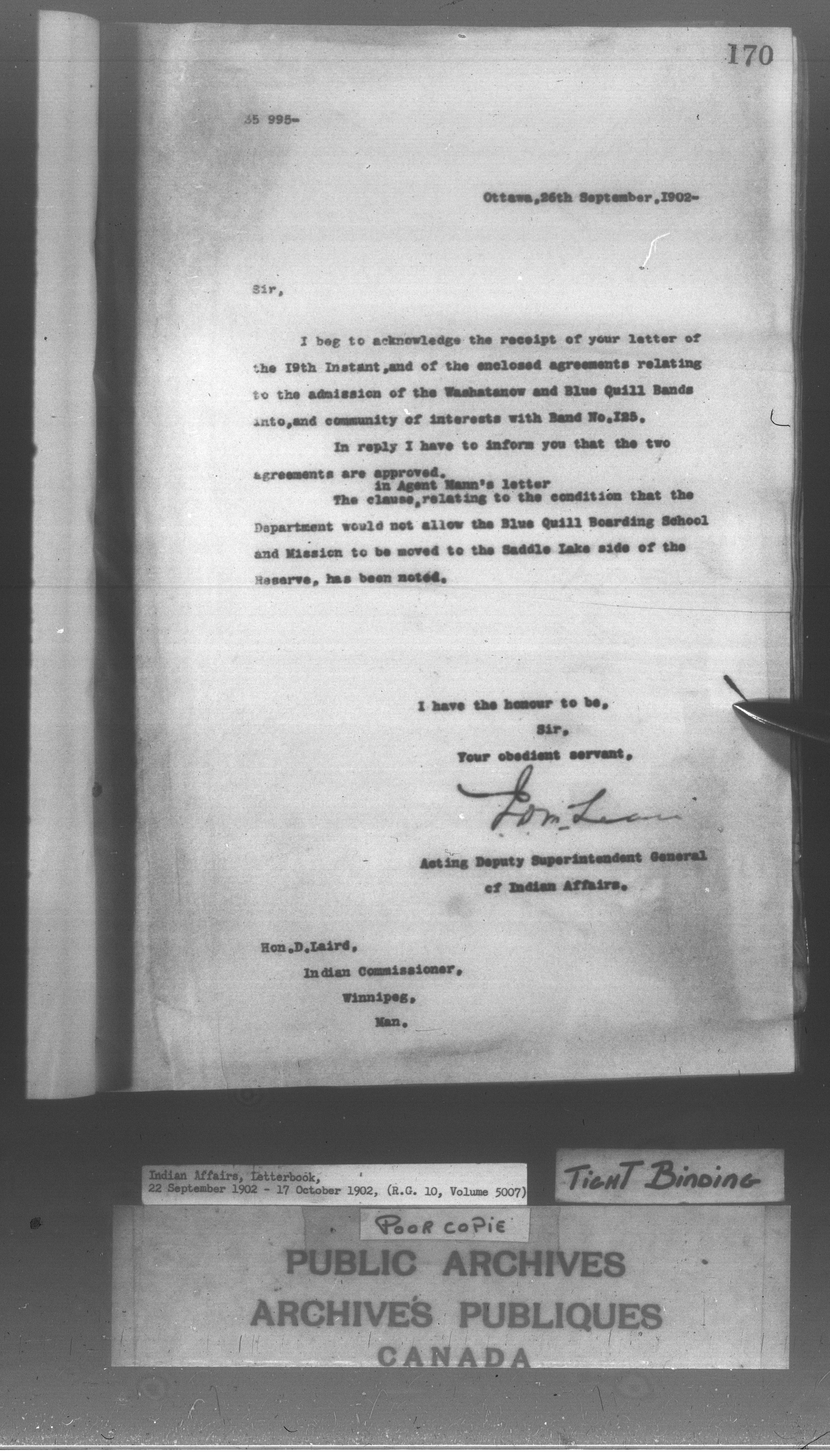 Department of Indian Affairs : Letterbooks of out-going correspondence relating to the administration of Indian Affairs in both eastern and western Canada, 1871-1920 - 8564